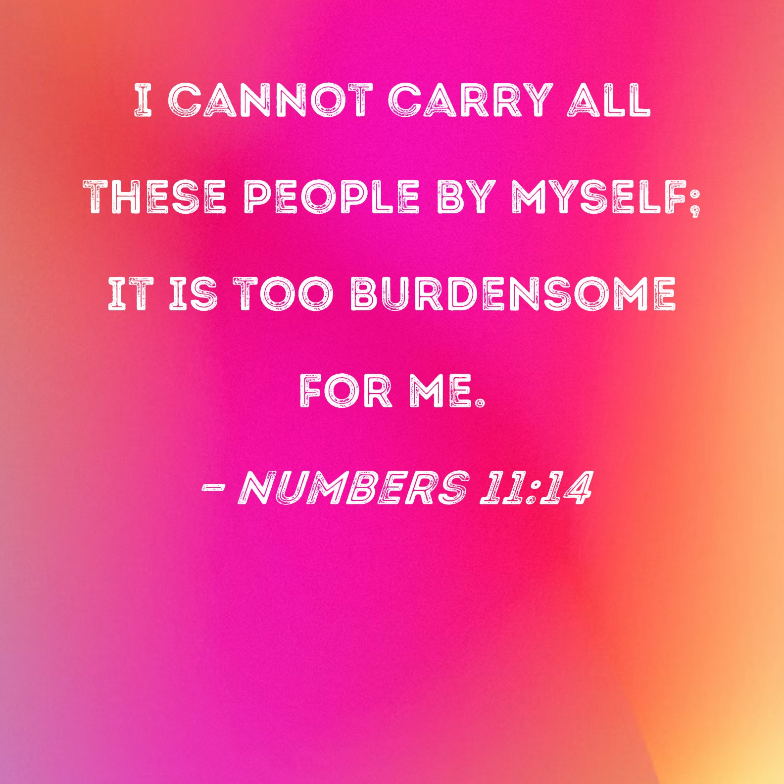 Numbers 11:14 I cannot carry all these people by myself; it is too burdensome for me.