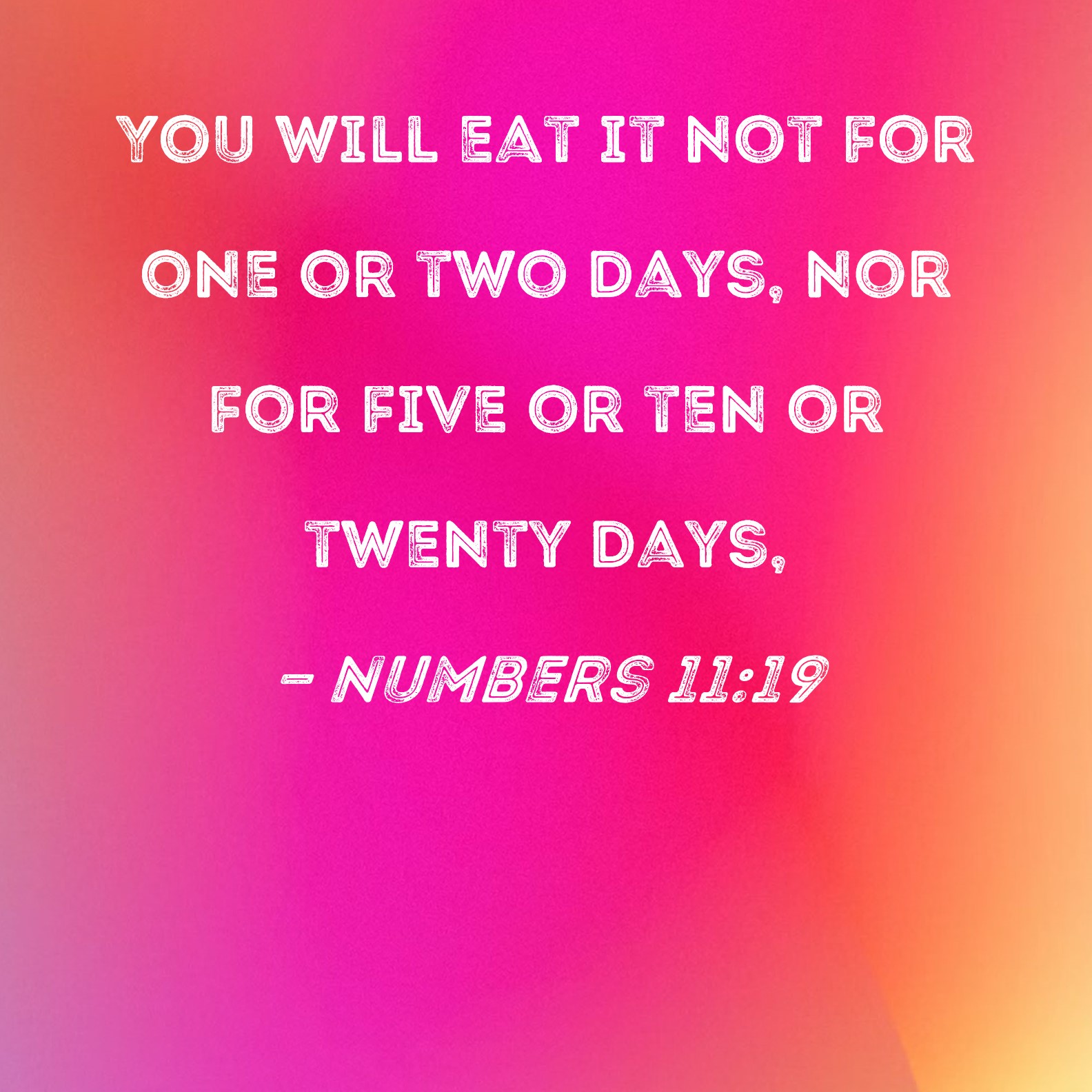 Numbers 11:19 You will eat it not for one or two days, nor for five or ten or twenty days,
