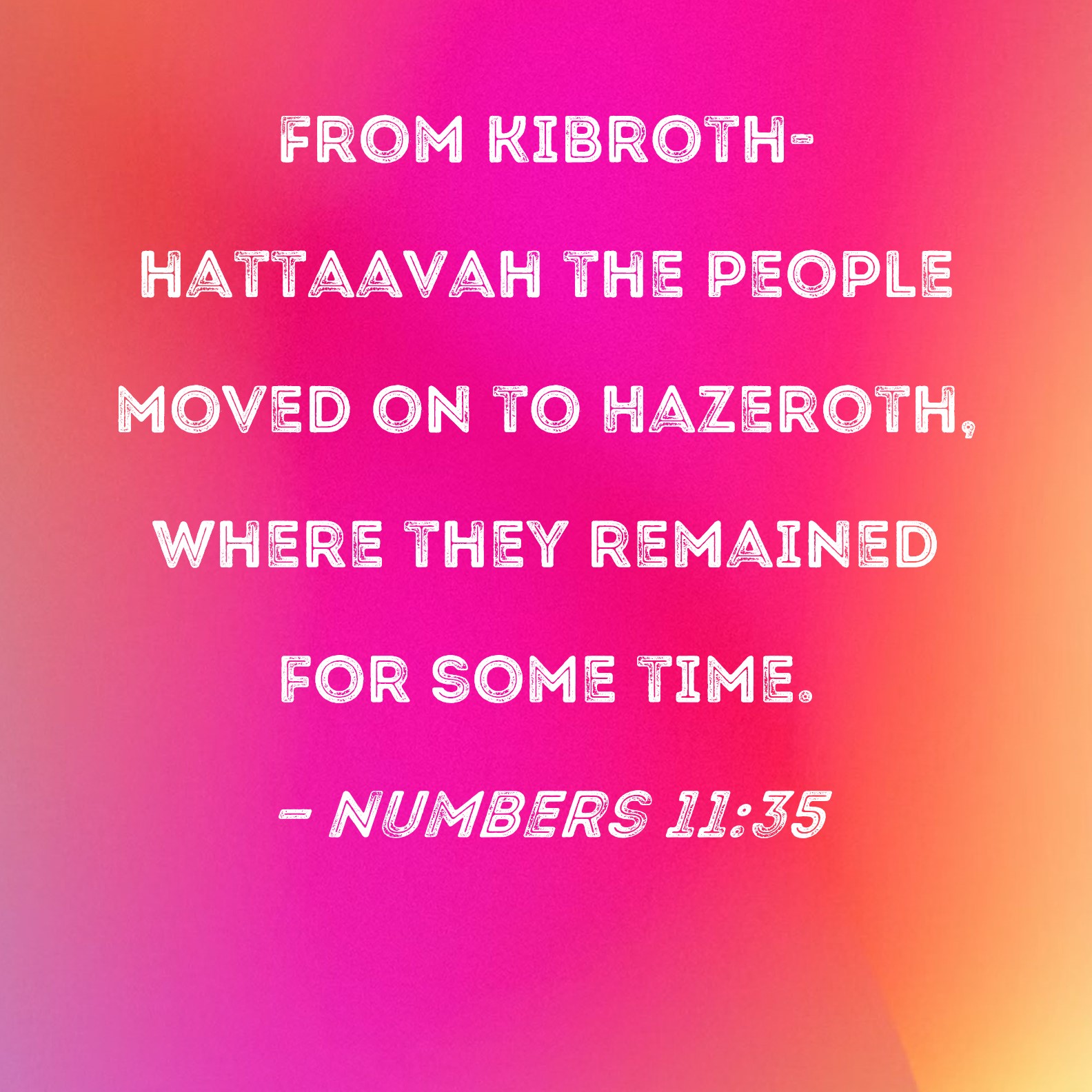 Numbers 11:35 From Kibroth-hattaavah the people moved on to Hazeroth, where they remained for some time.