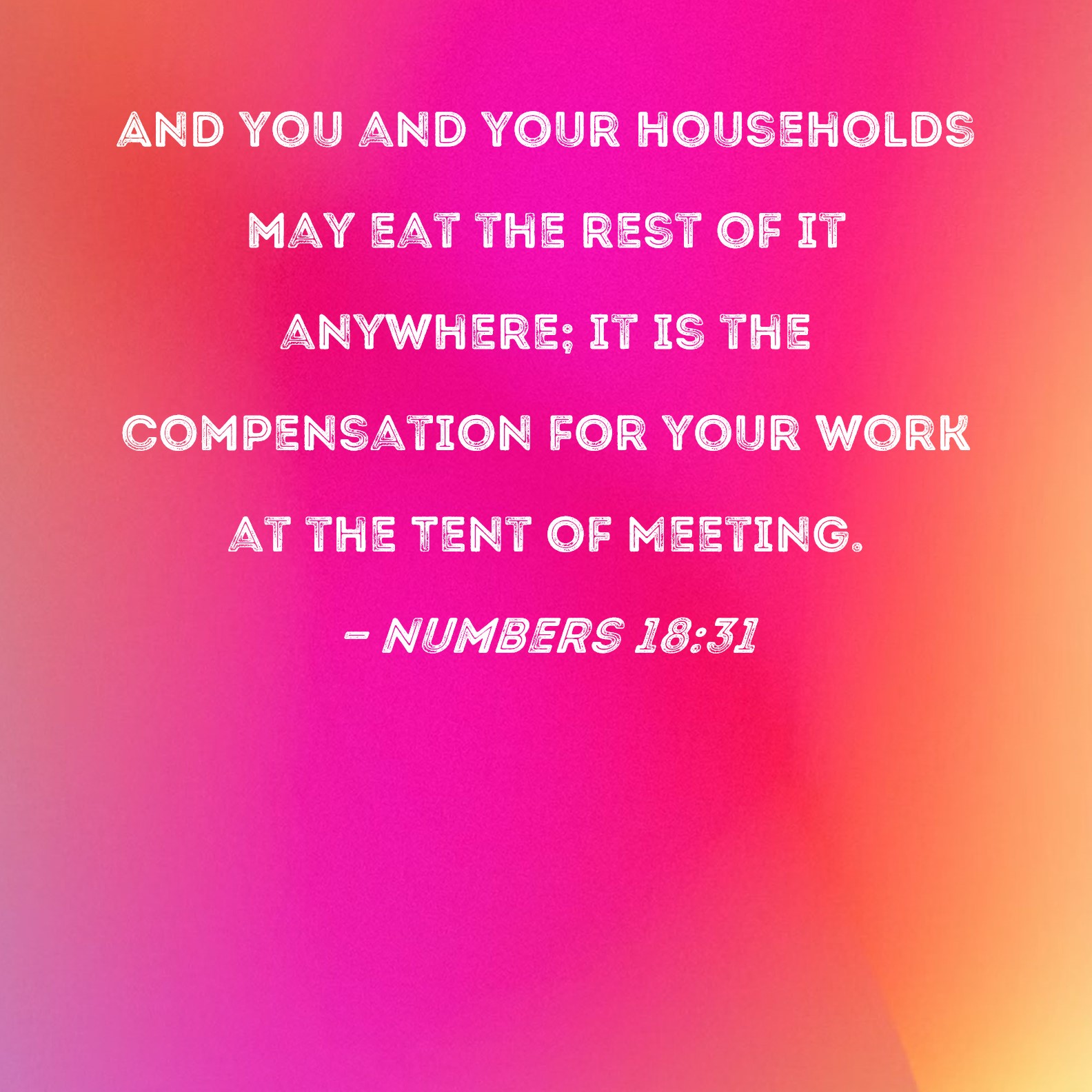 Numbers 18:31 And you and your households may eat the rest of it anywhere; it is the compensation for your work at the Tent of Meeting.