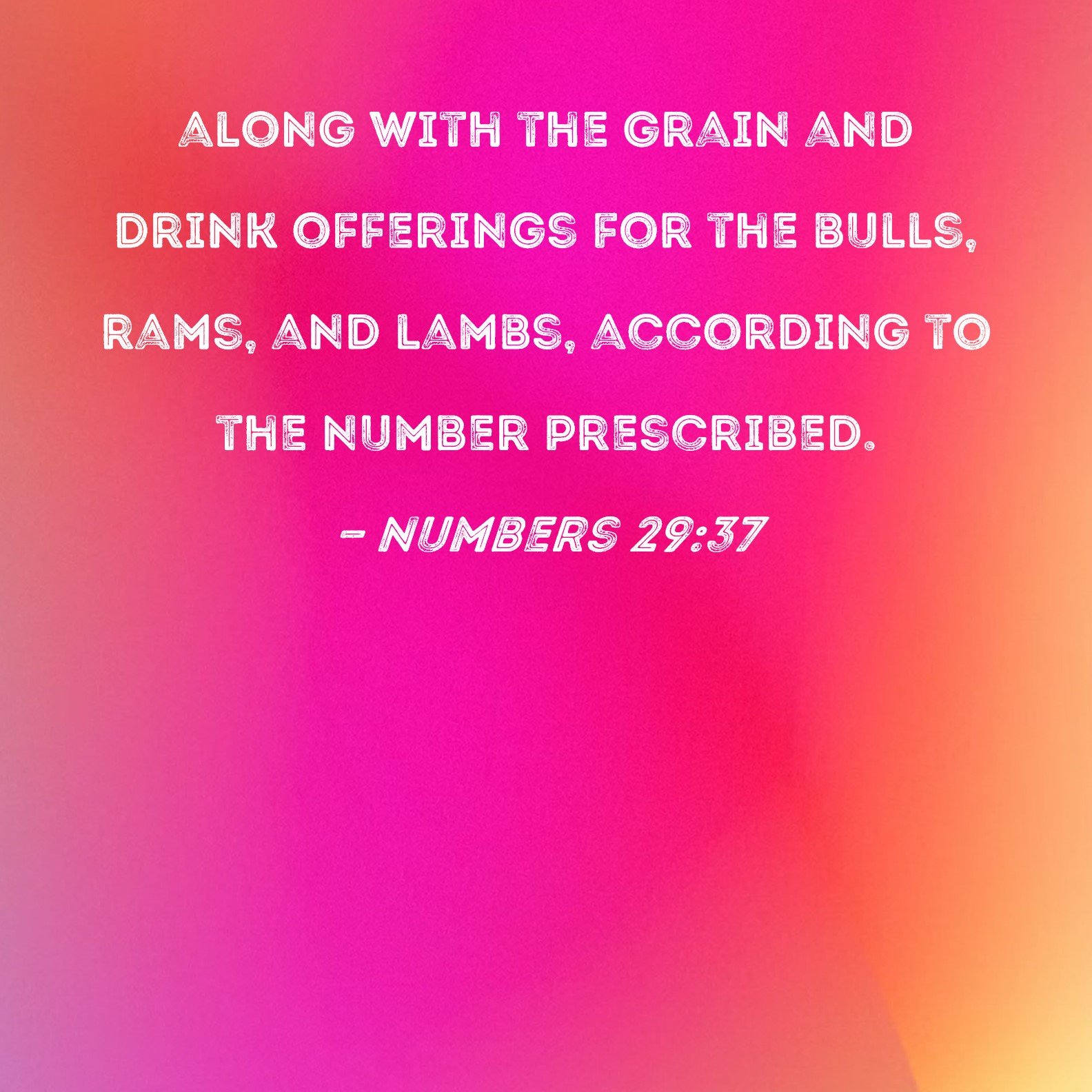 Numbers 29:37 along with the grain and drink offerings for the bulls, rams, and lambs, according to the number prescribed.