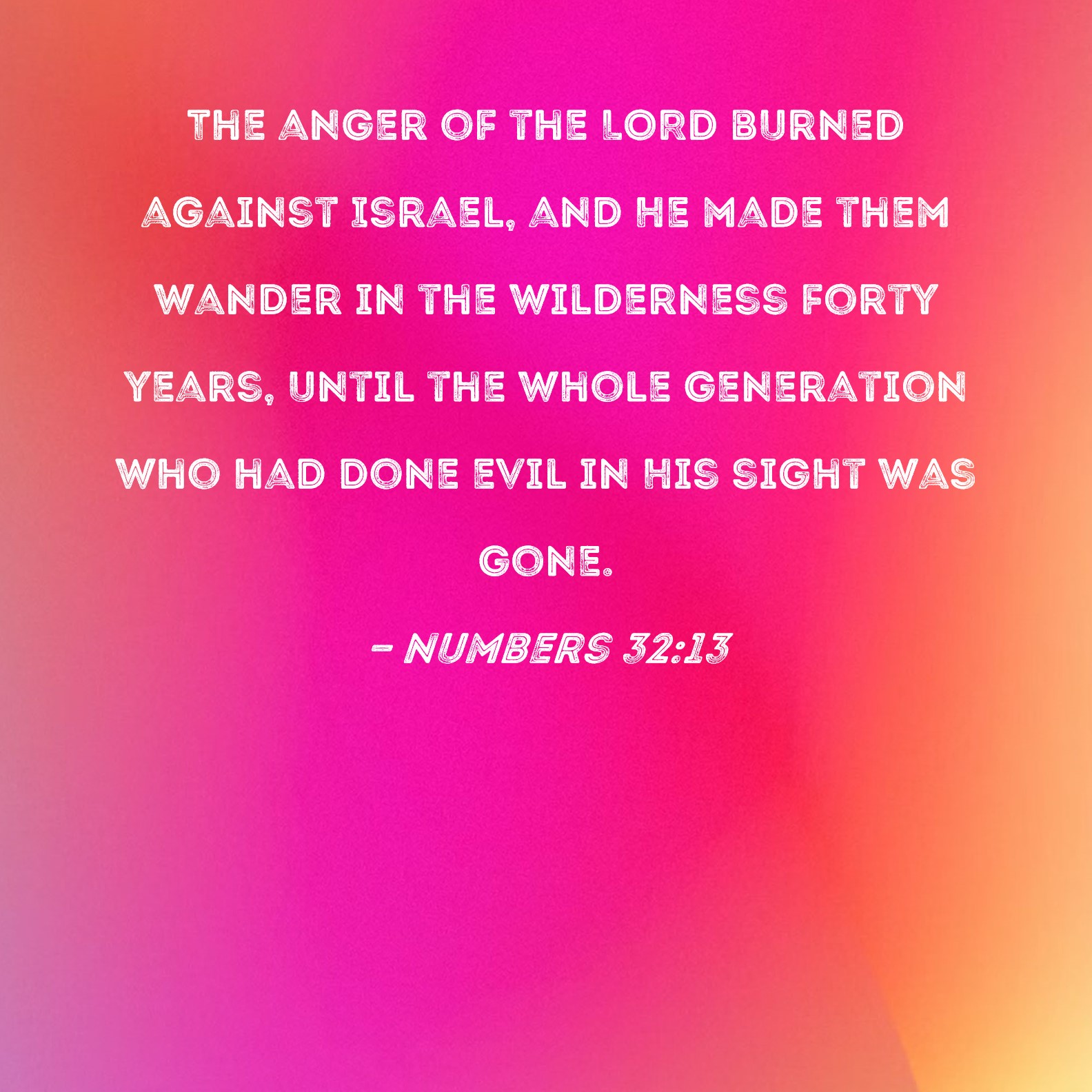 Numbers 32:13 The anger of the LORD burned against Israel, and He made them wander in the wilderness forty years, until the whole generation who had done evil in His sight was gone.