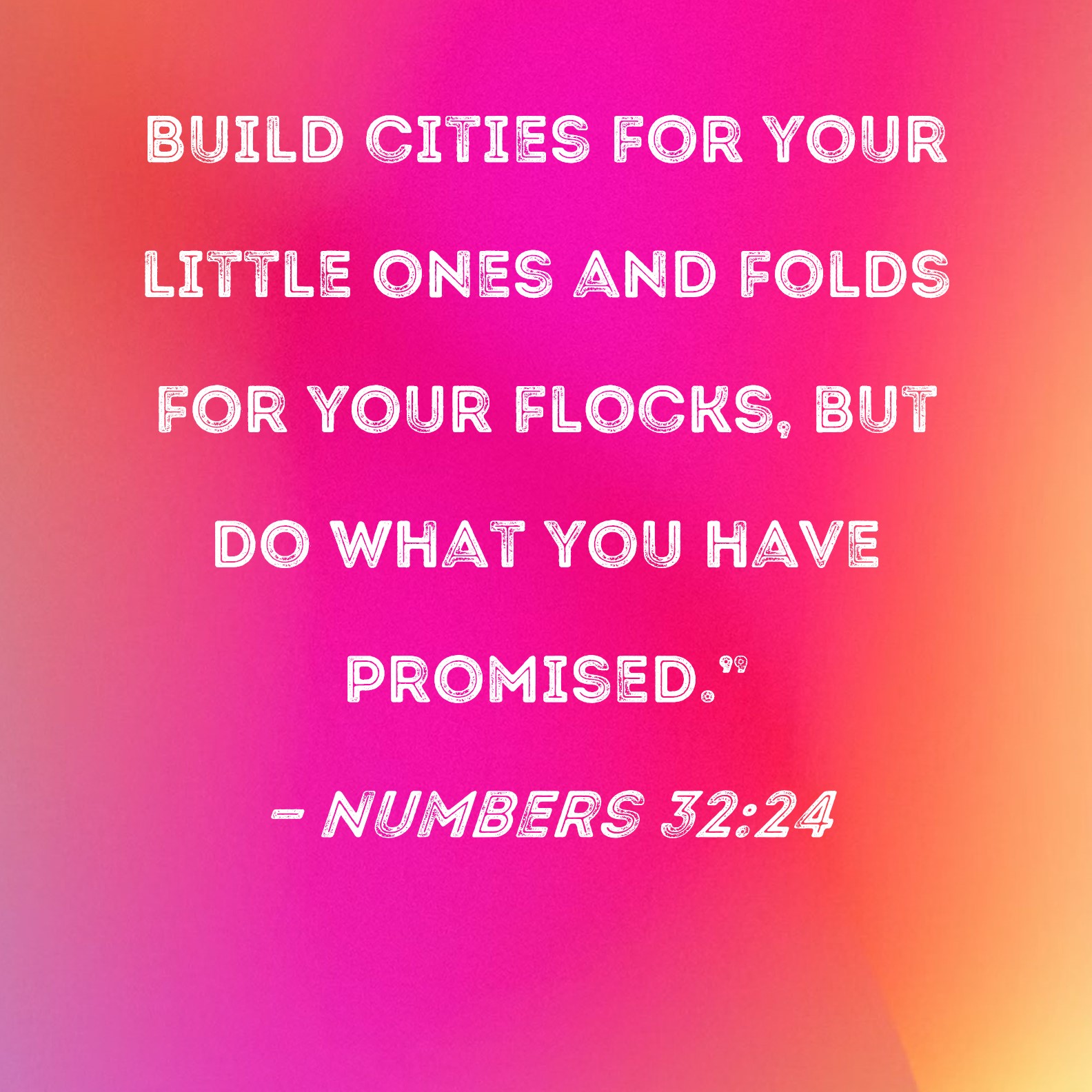 Numbers 32:24 Build cities for your little ones and folds for your flocks, but do what you have promised."