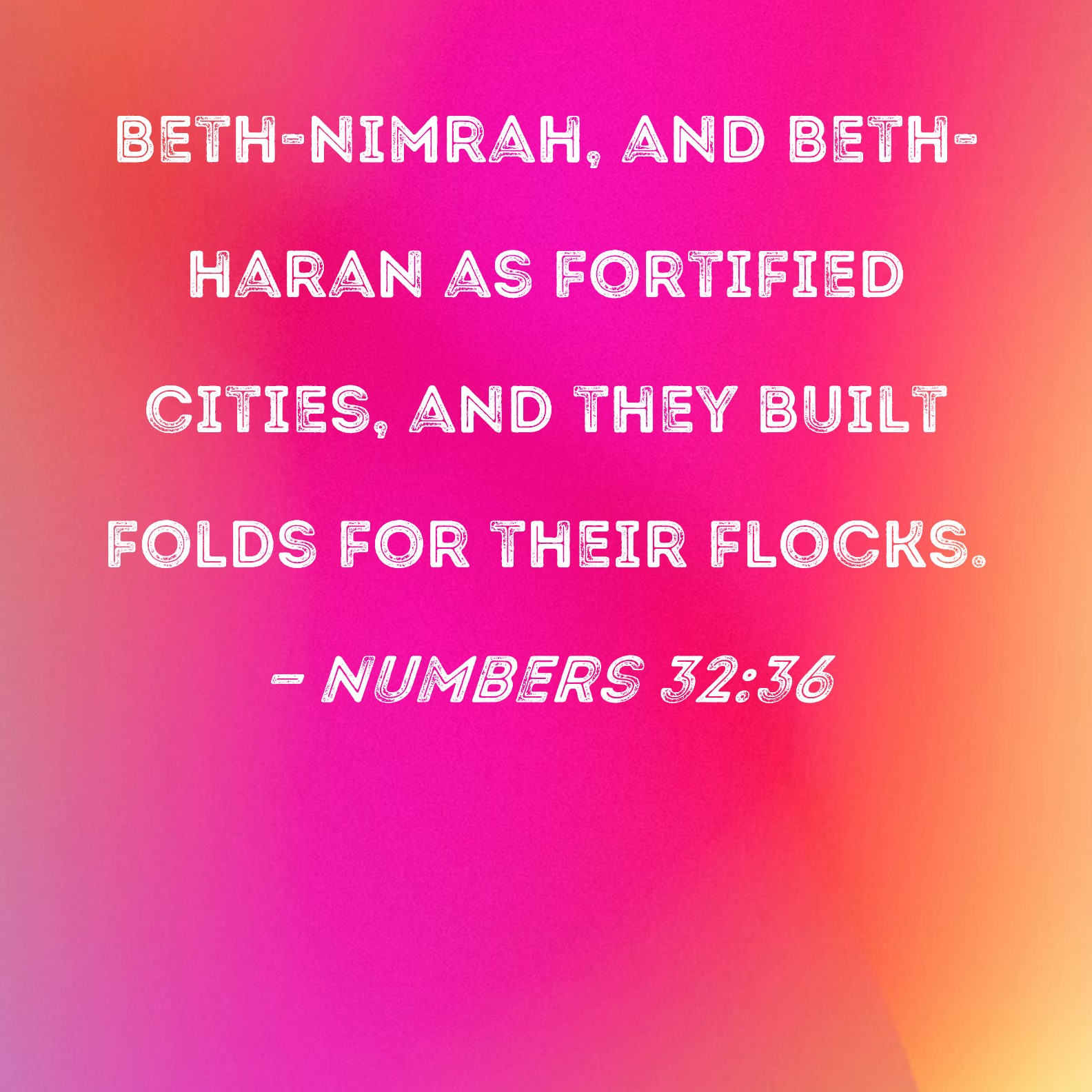 Numbers 32:36 Beth-nimrah, and Beth-haran as fortified cities, and they built folds for their flocks.