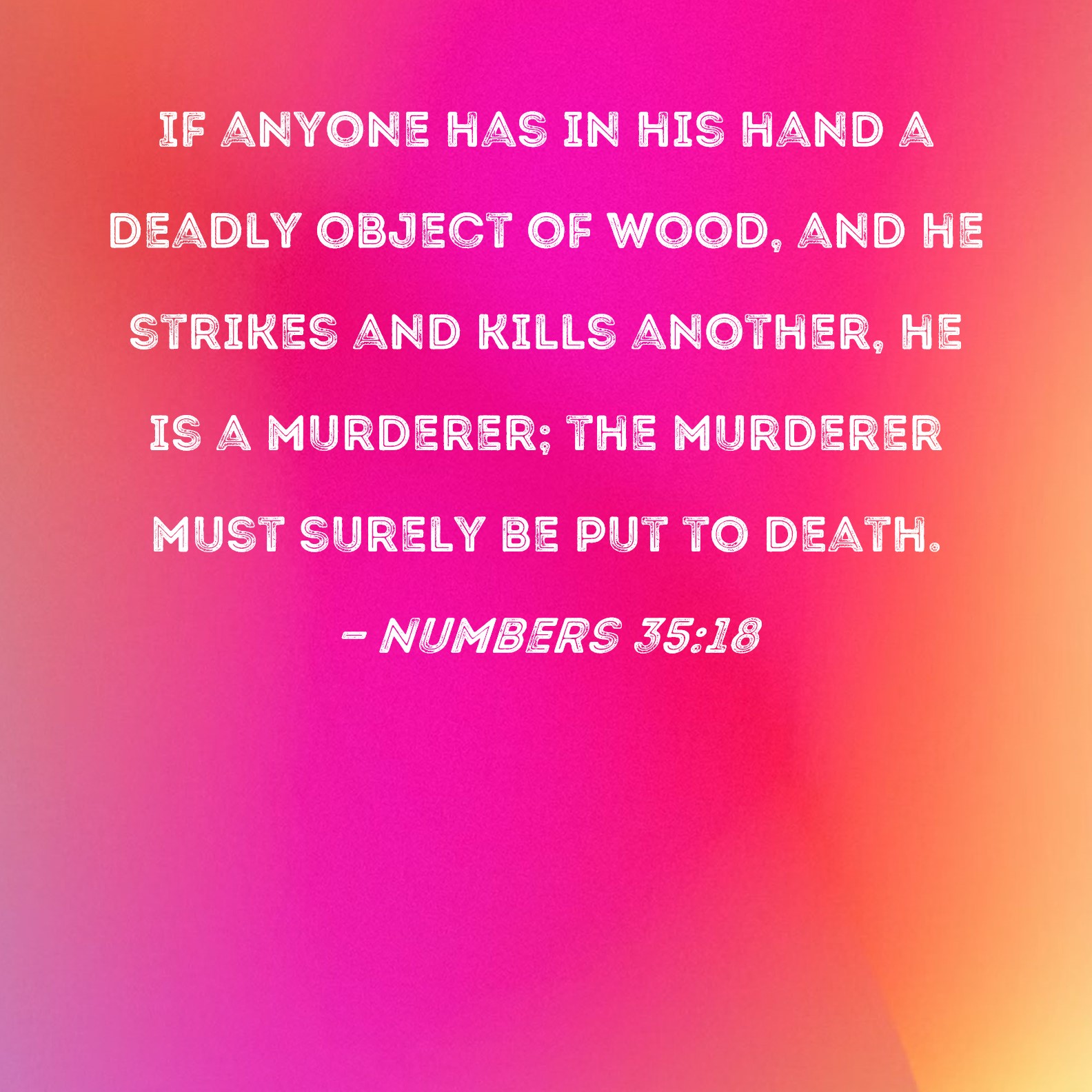 Numbers 35:18 If anyone has in his hand a deadly object of wood, and he strikes and kills another, he is a murderer; the murderer must surely be put to death.