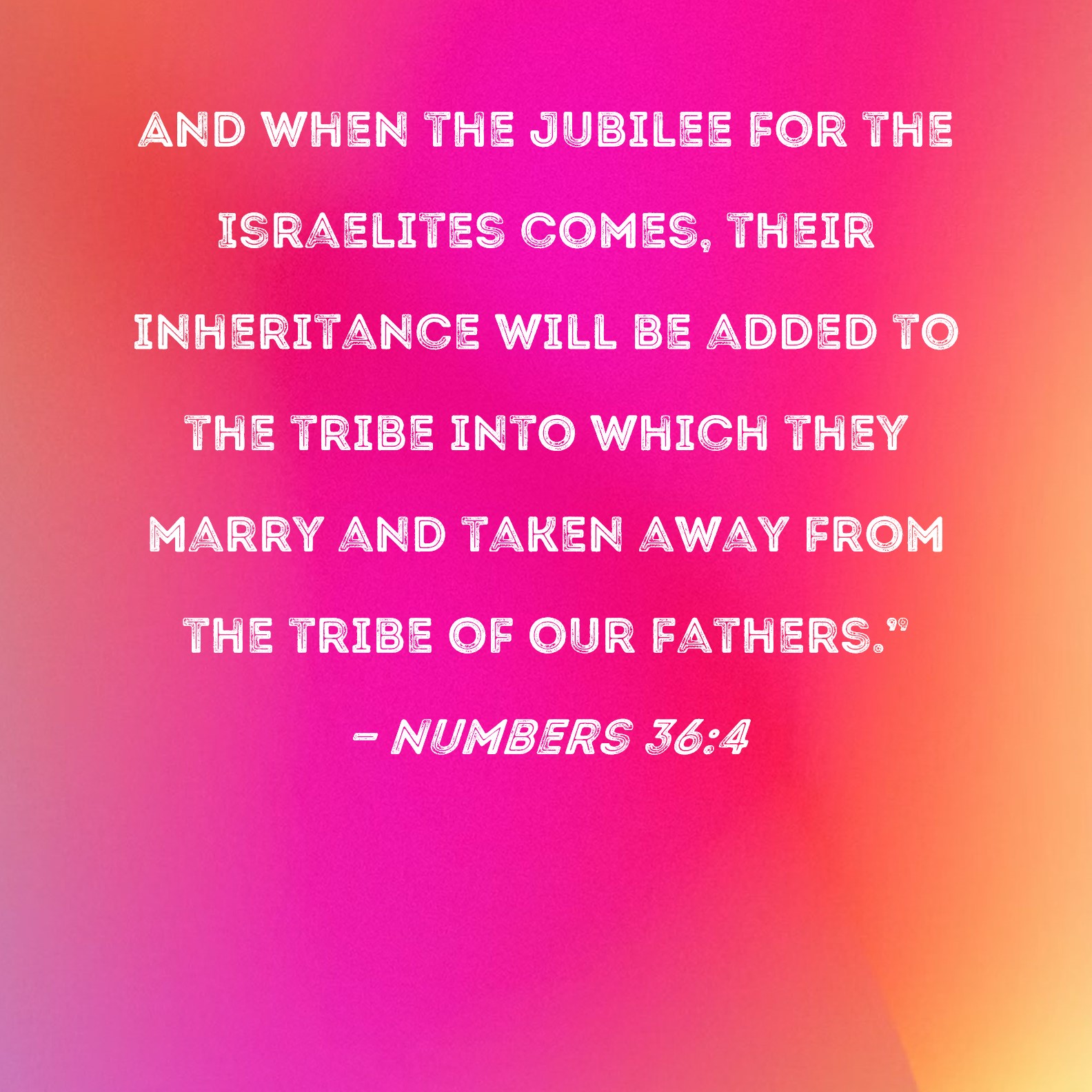 Numbers 36:4 And when the Jubilee for the Israelites comes, their inheritance will be added to the tribe into which they marry and taken away from the tribe of our fathers."