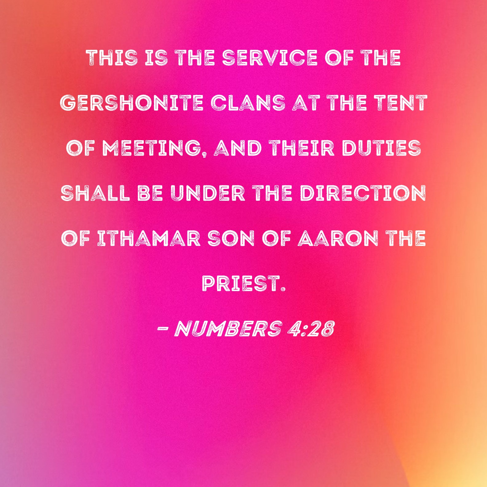 Numbers 4:28 This is the service of the Gershonite clans at the Tent of Meeting, and their duties shall be under the direction of Ithamar son of Aaron the priest.