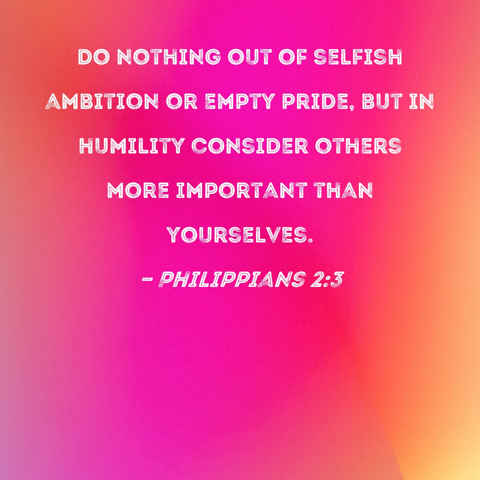 Philippians 2:3 Do nothing out of selfish ambition or empty pride, but in humility consider others more important than yourselves.