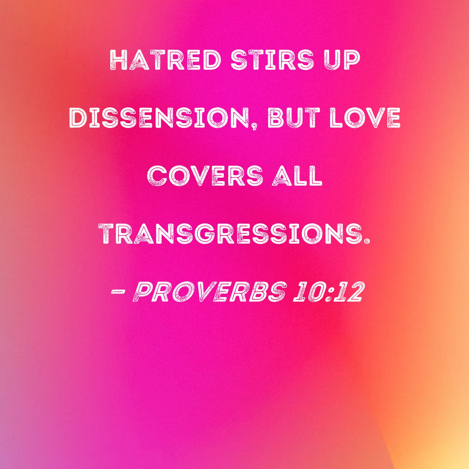 Proverbs 10:12 Hatred stirs up dissension, but love covers all transgressions.