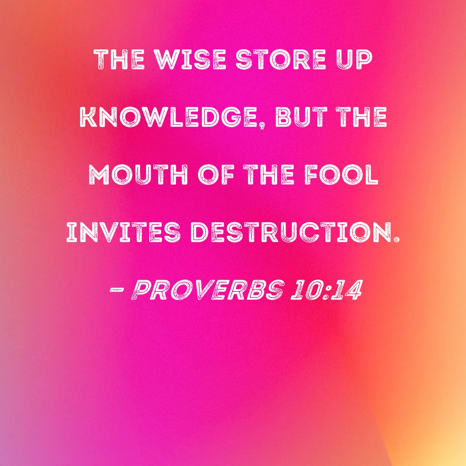 Proverbs 10:14 The wise store up knowledge, but the mouth of the fool invites destruction.