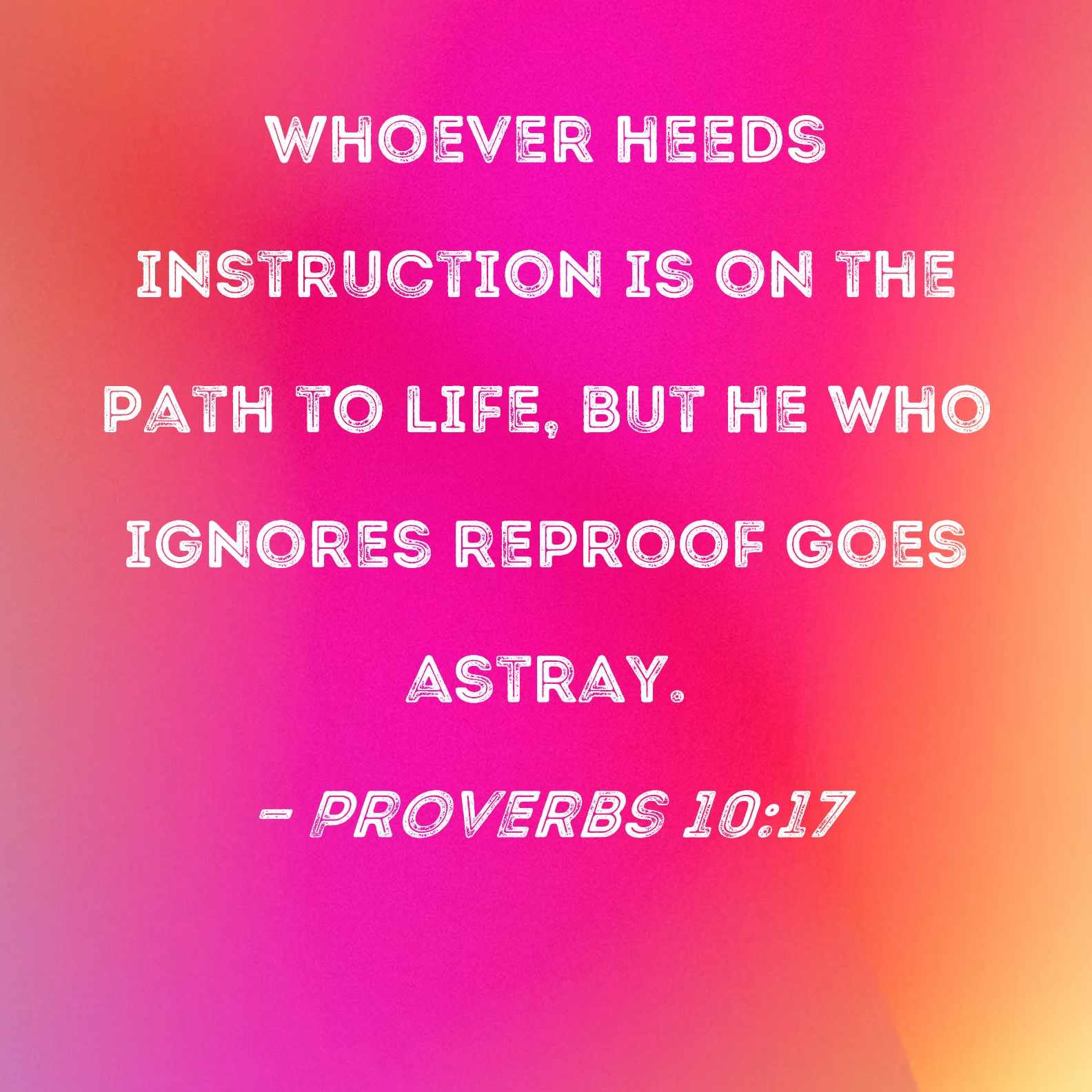 Proverbs 10:17 Whoever heeds instruction is on the path to life, but he who ignores reproof goes astray.