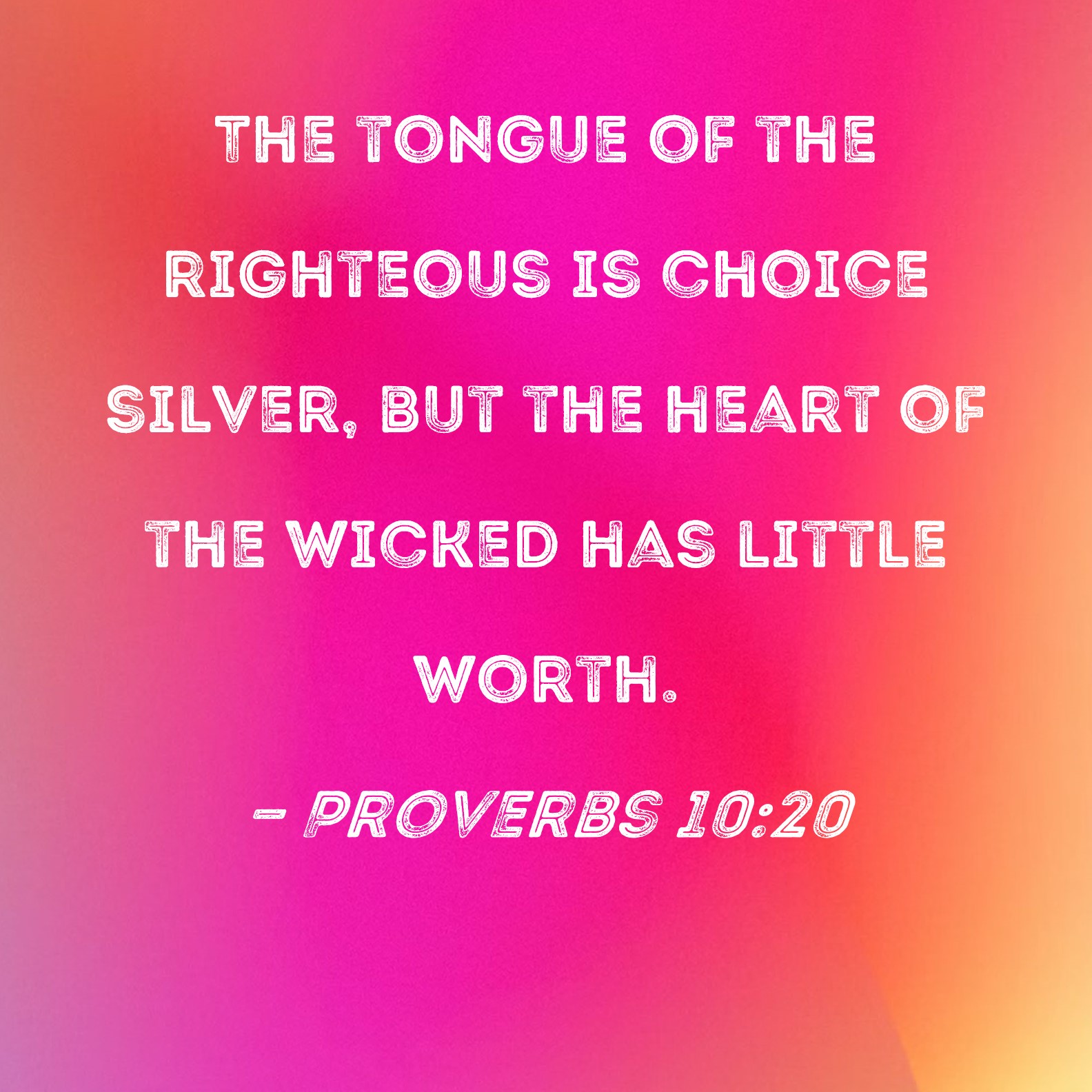 Proverbs 10:20 The tongue of the righteous is choice silver, but the heart of the wicked has little worth.