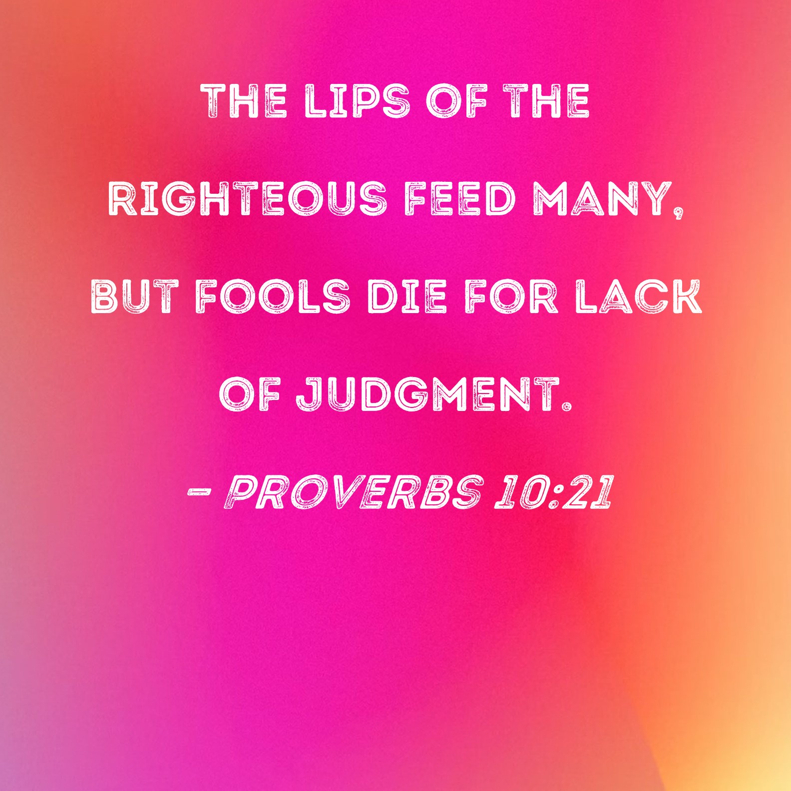 Proverbs 10:21 The lips of the righteous feed many, but fools die for lack of judgment.