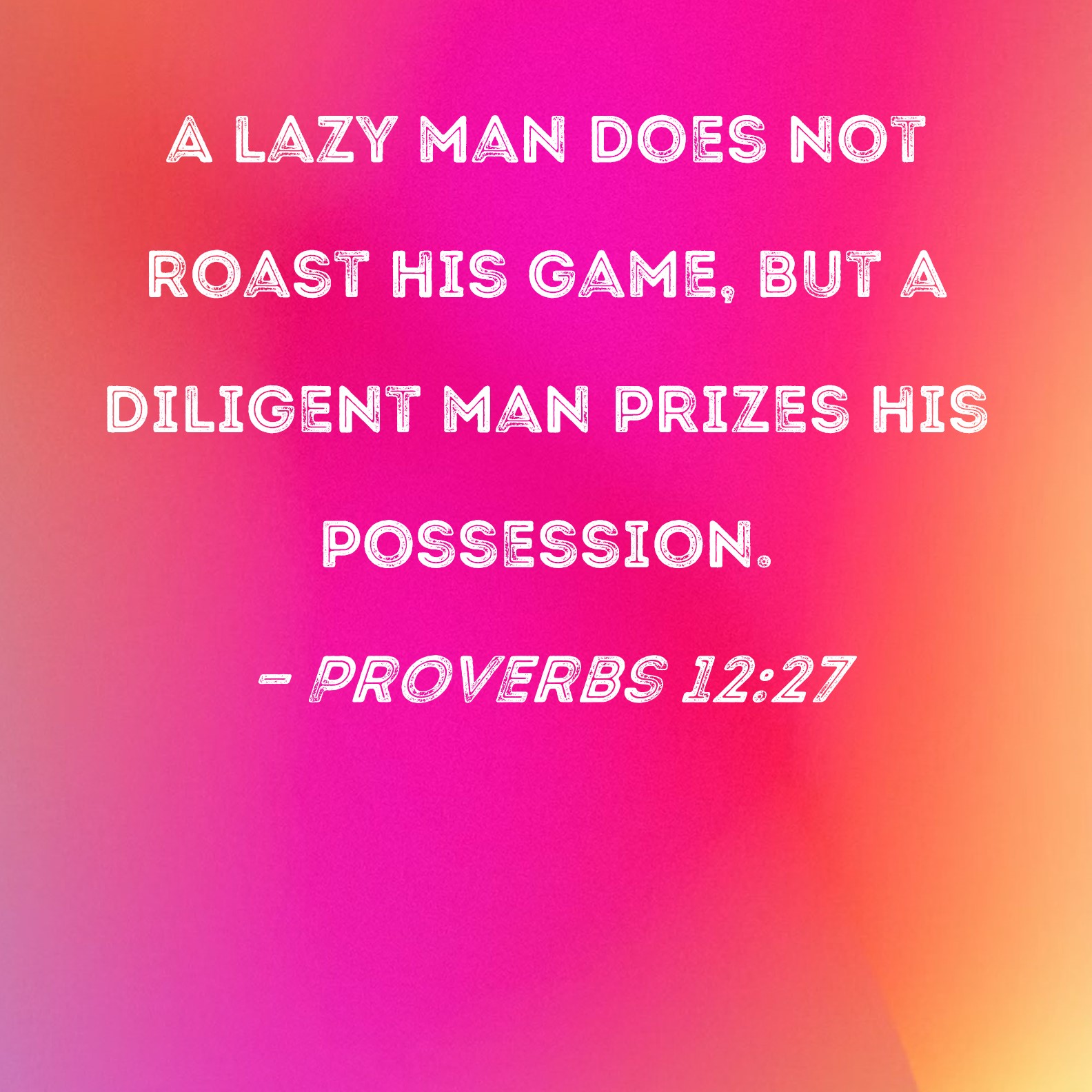 Proverbs 12:27 A lazy man does not roast his game, but a diligent man prizes his possession.