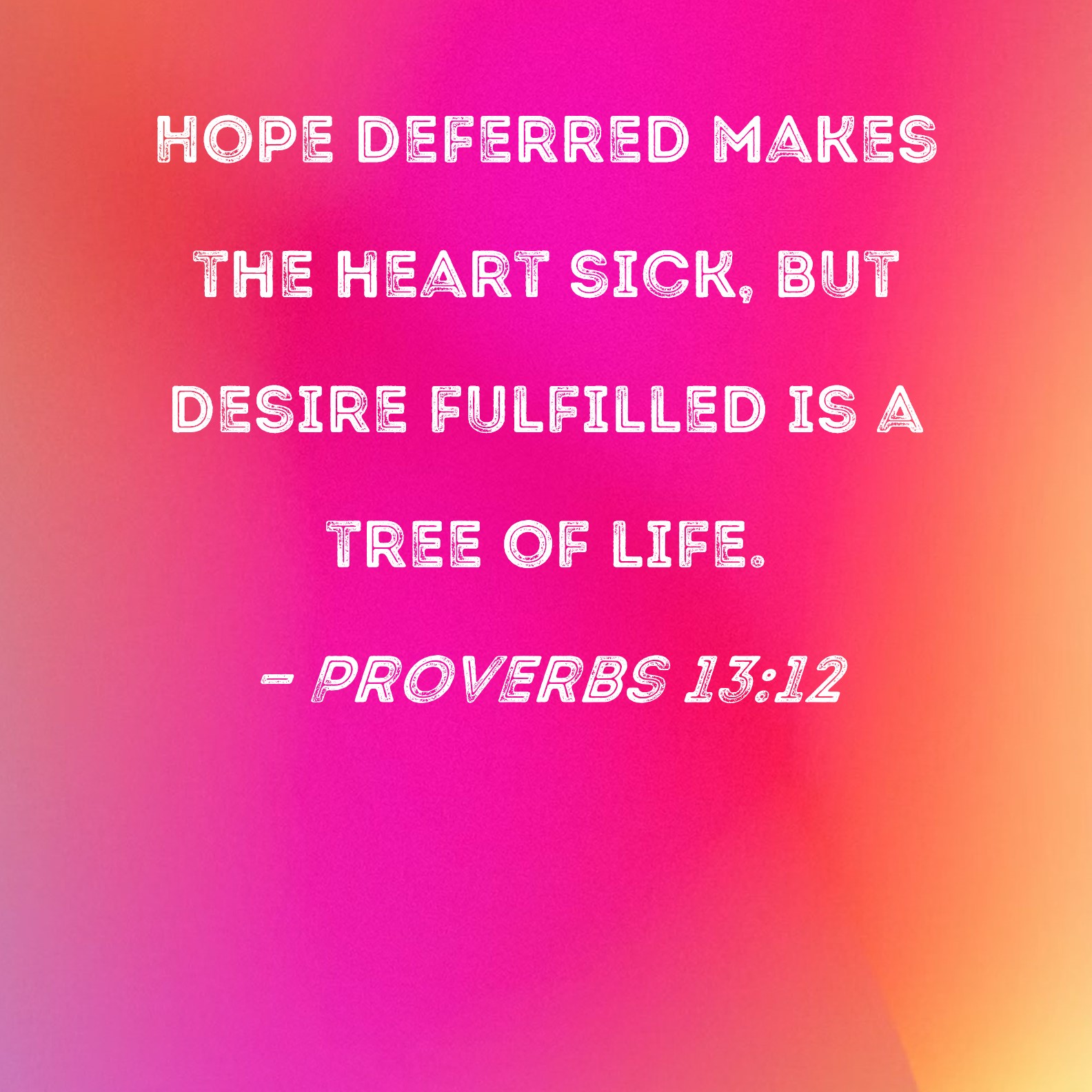 Proverbs 13:12 Hope deferred makes the heart sick, but desire fulfilled is a tree of life.
