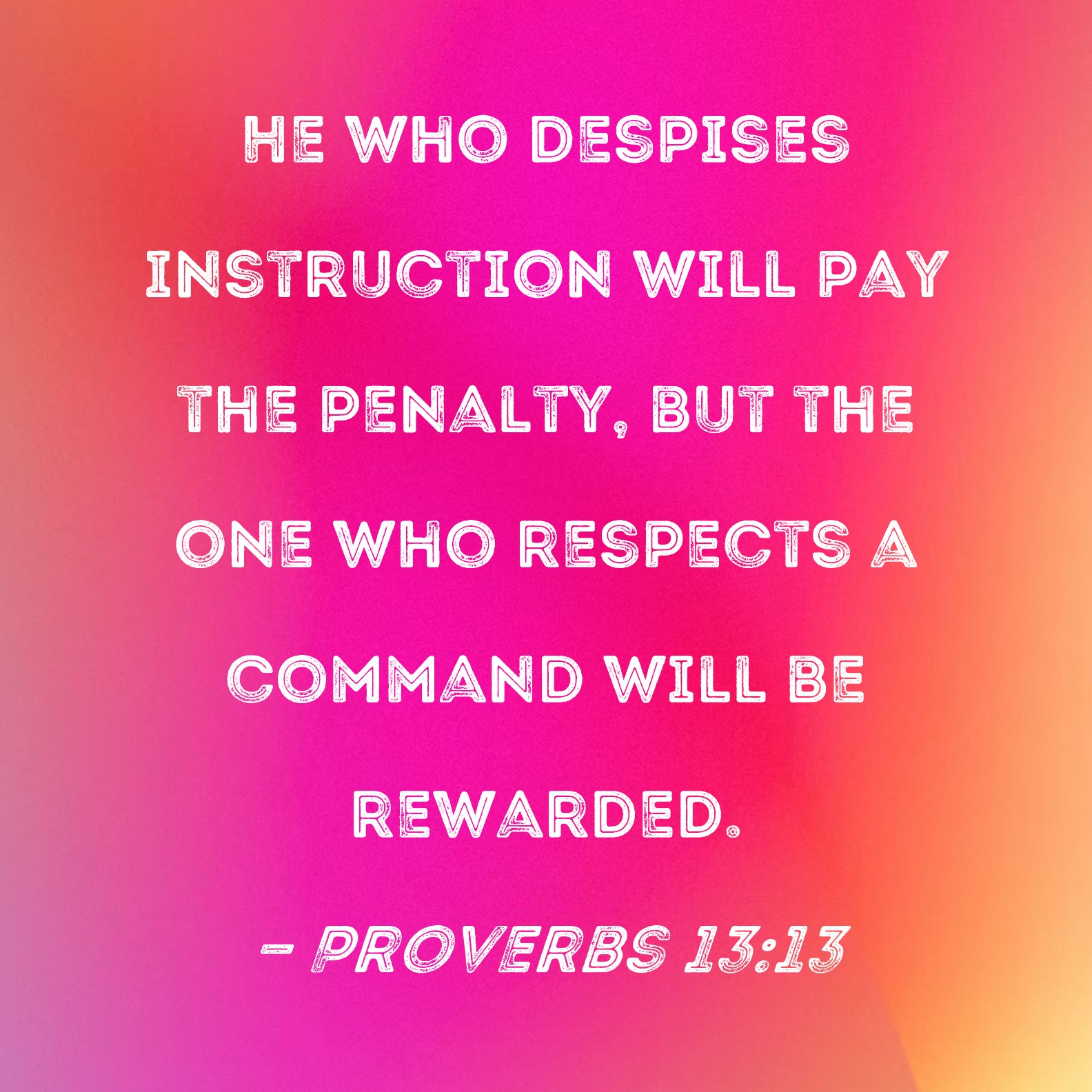 Proverbs 13:13 He who despises instruction will pay the penalty, but the one who respects a command will be rewarded.
