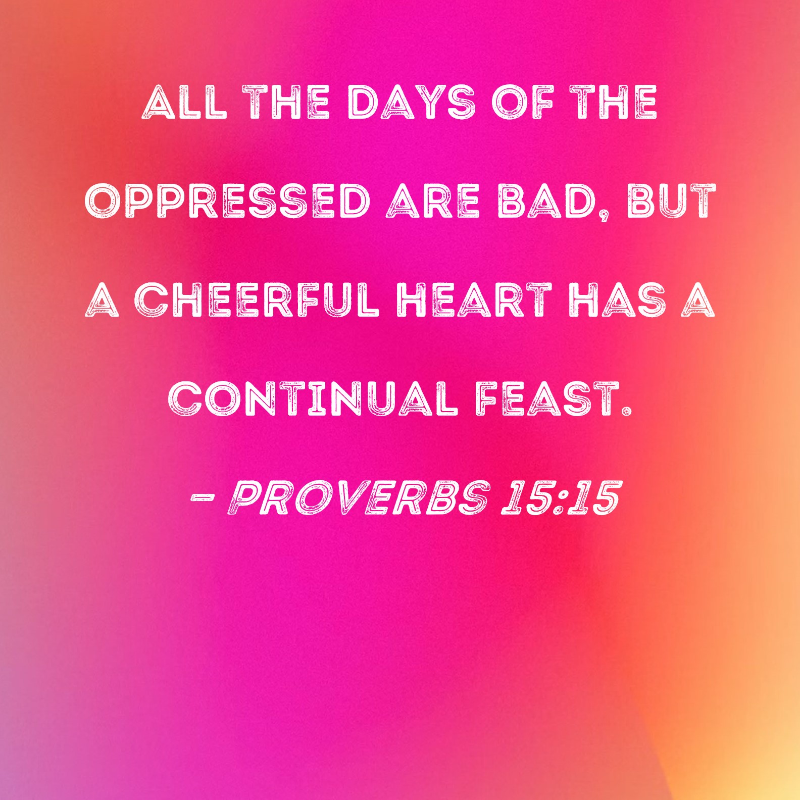 Proverbs 15:15 All the days of the oppressed are bad, but a cheerful heart has a continual feast.