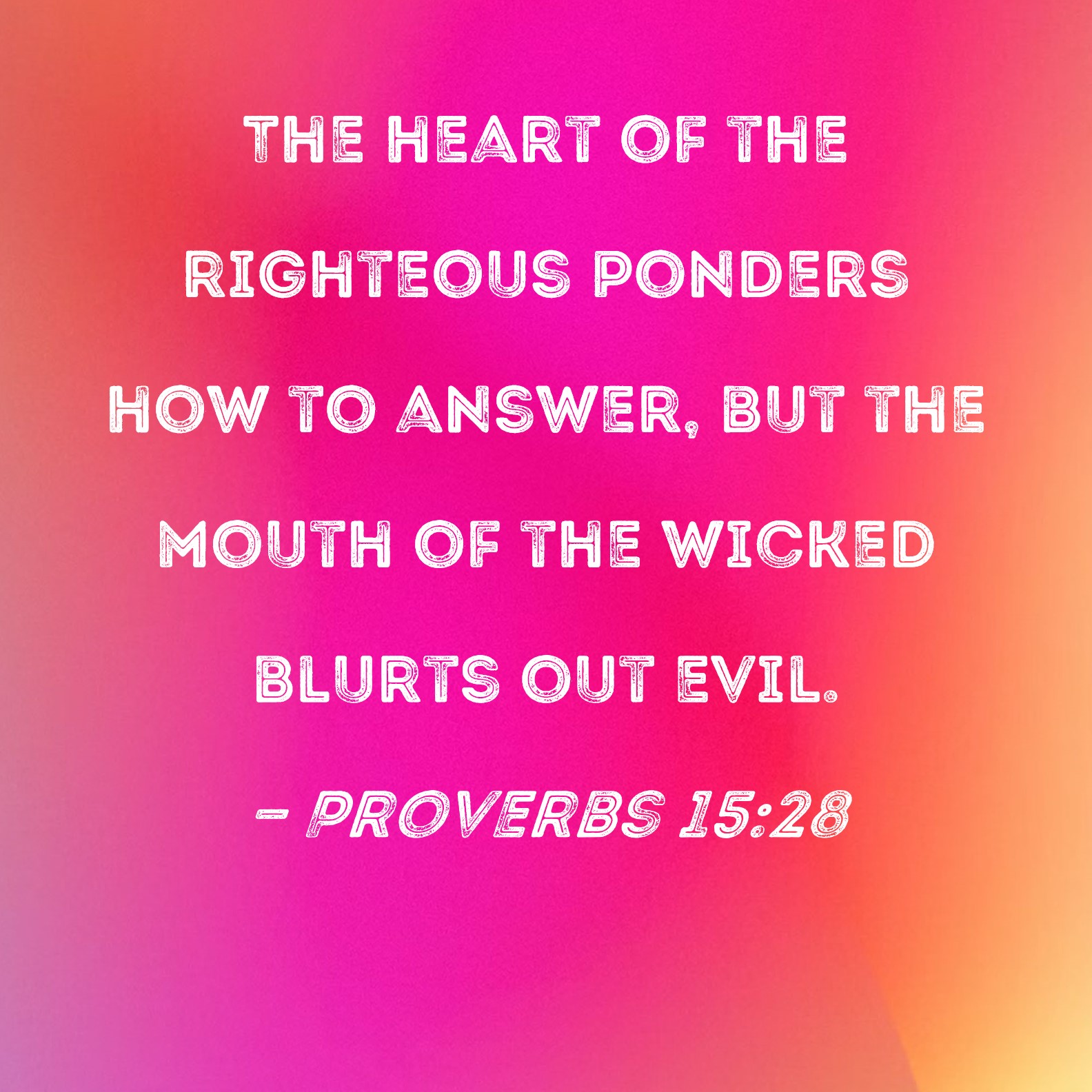 Proverbs 15:28 The heart of the righteous ponders how to answer, but the mouth of the wicked blurts out evil.
