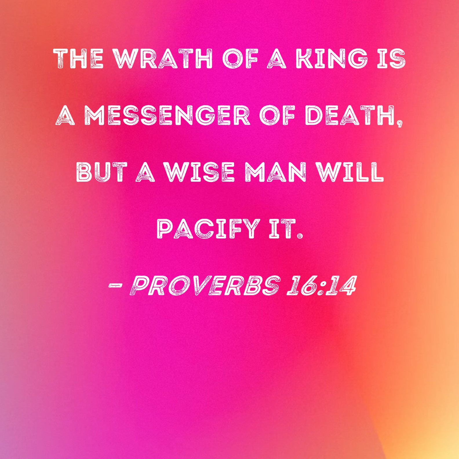 Proverbs 16:14 The wrath of a king is a messenger of death, but a wise man will pacify it.