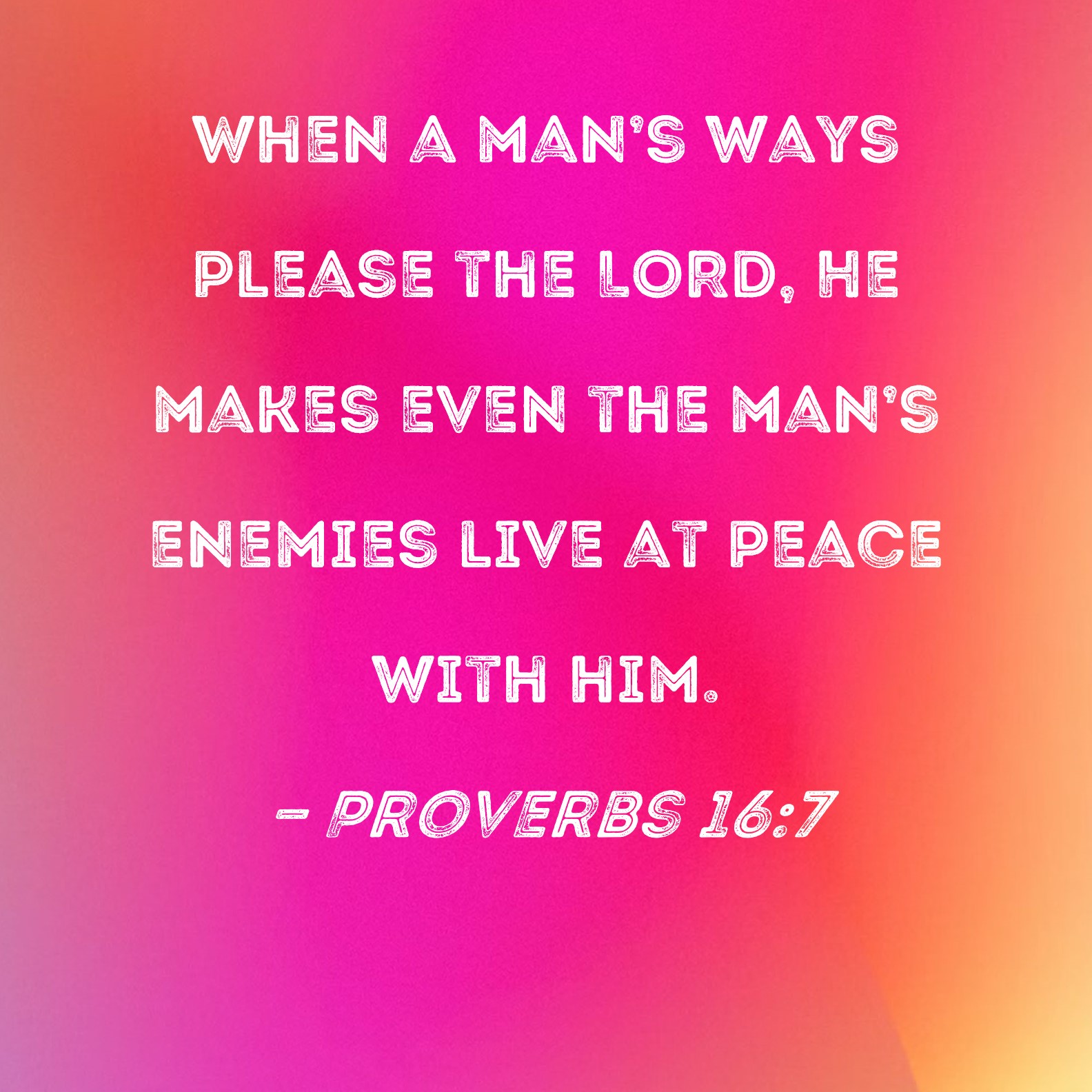 Proverbs 16:7 When a man's ways please the LORD, He makes even the man's enemies live at peace with him.