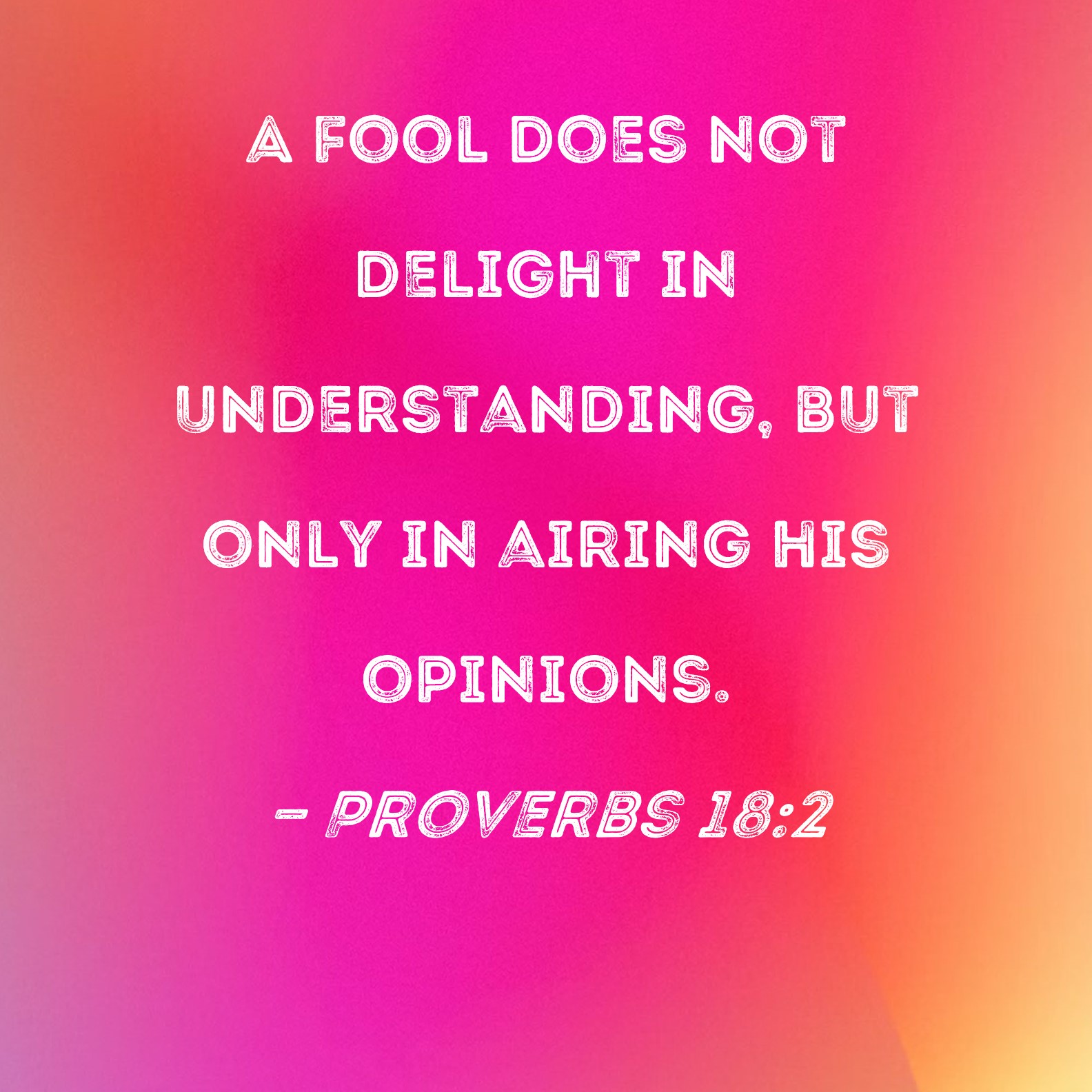 Proverbs 18:2 A fool does not delight in understanding, but only in airing his opinions.