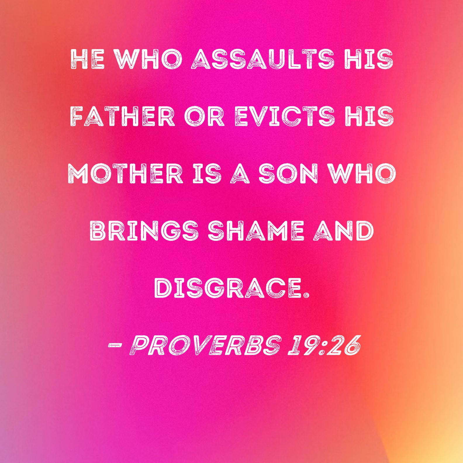 Proverbs 19:26 He who assaults his father or evicts his mother is a son who brings shame and disgrace.