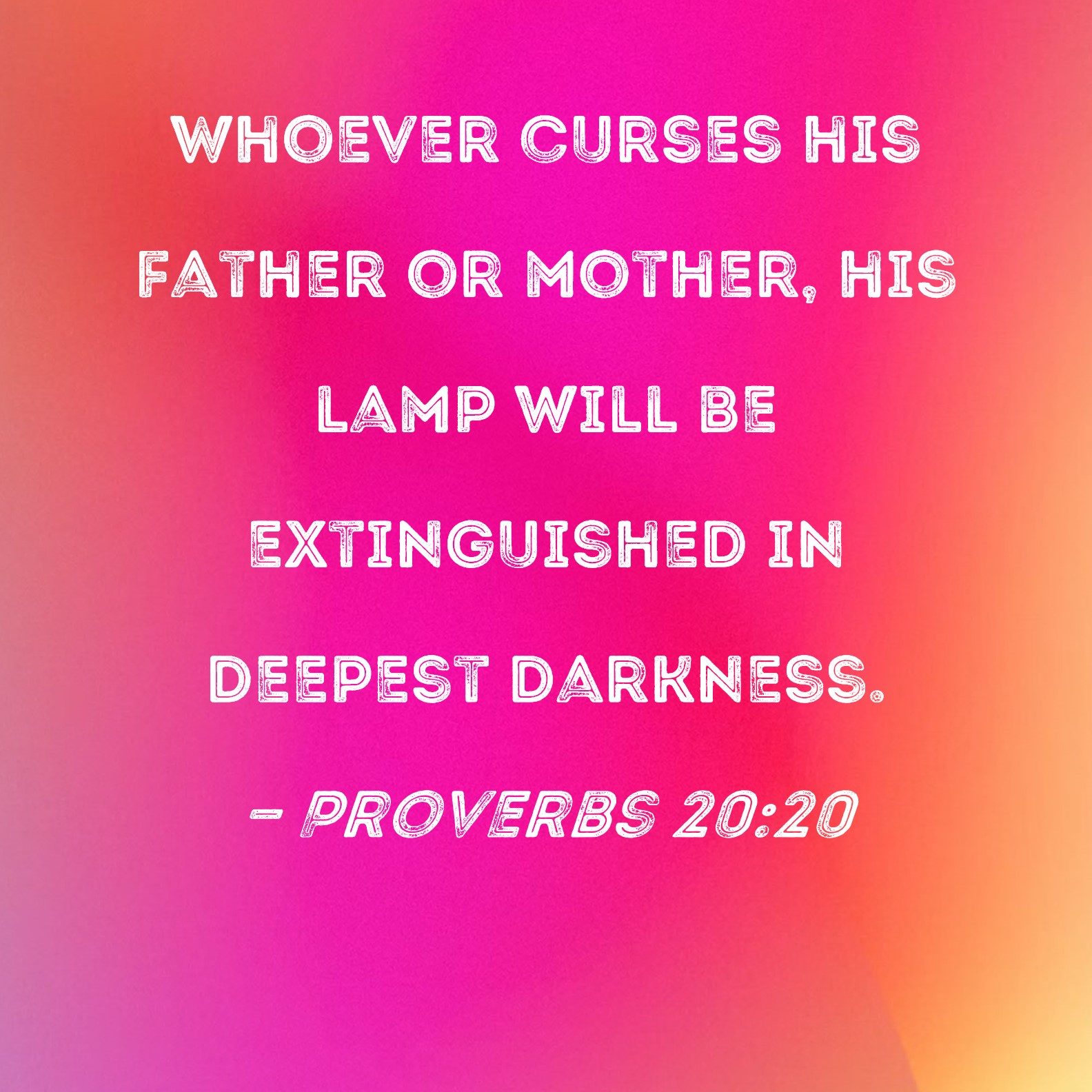Proverbs 20:20 Whoever curses his father or mother, his lamp will be extinguished in deepest darkness.