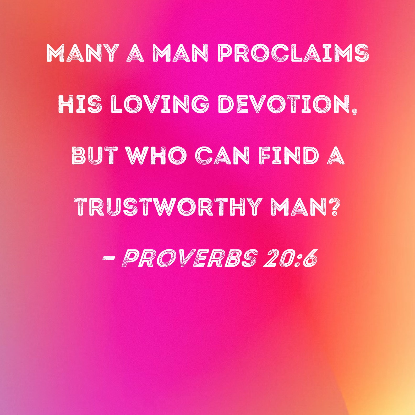 Proverbs 20:6 Many a man proclaims his loving devotion, but who can find a trustworthy man?