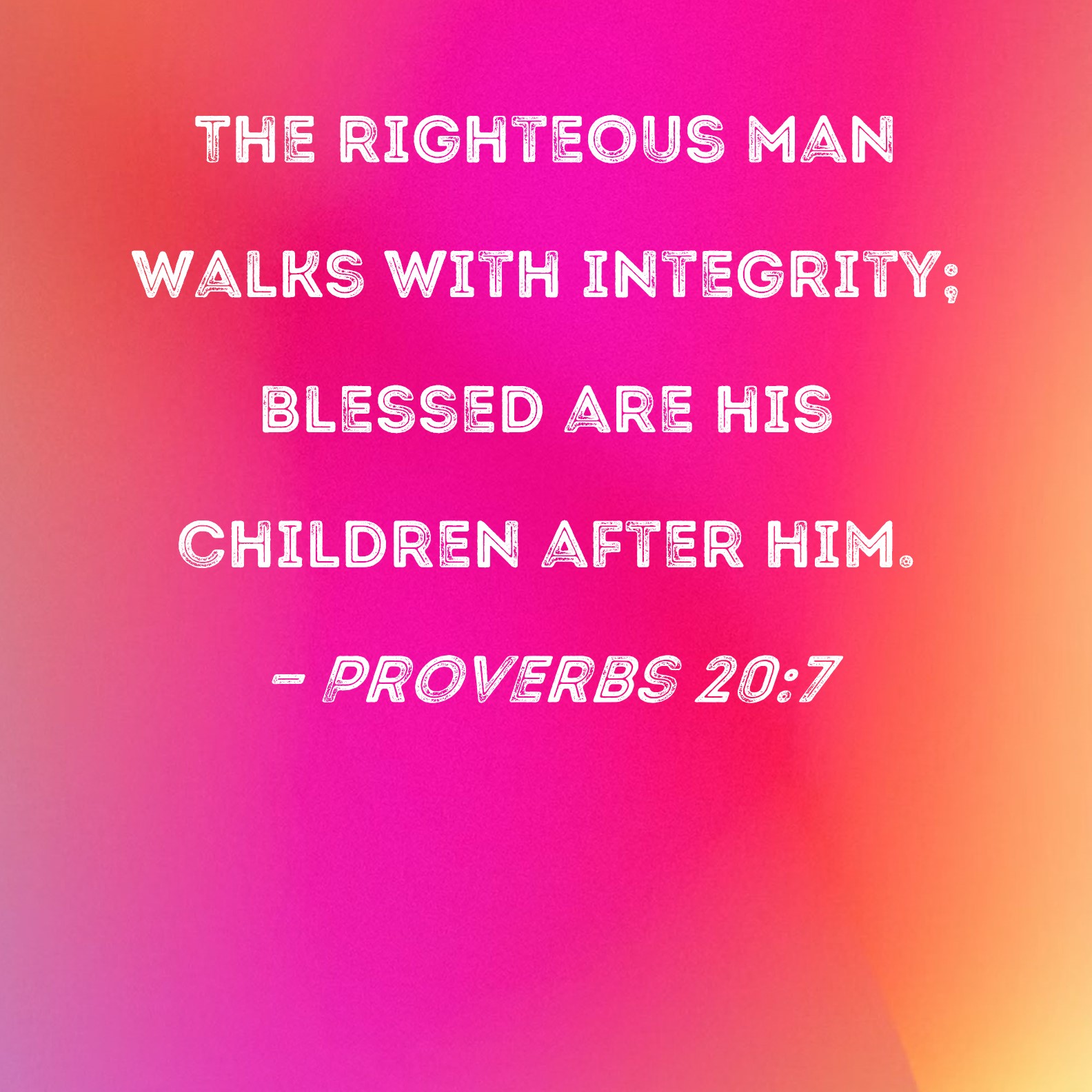 Proverbs 20:7 The righteous man walks with integrity; blessed are his children after him.