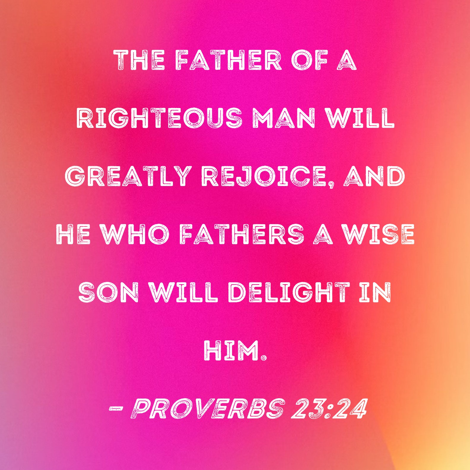 Proverbs 23:24 The father of a righteous man will greatly rejoice, and he who fathers a wise son will delight in him.