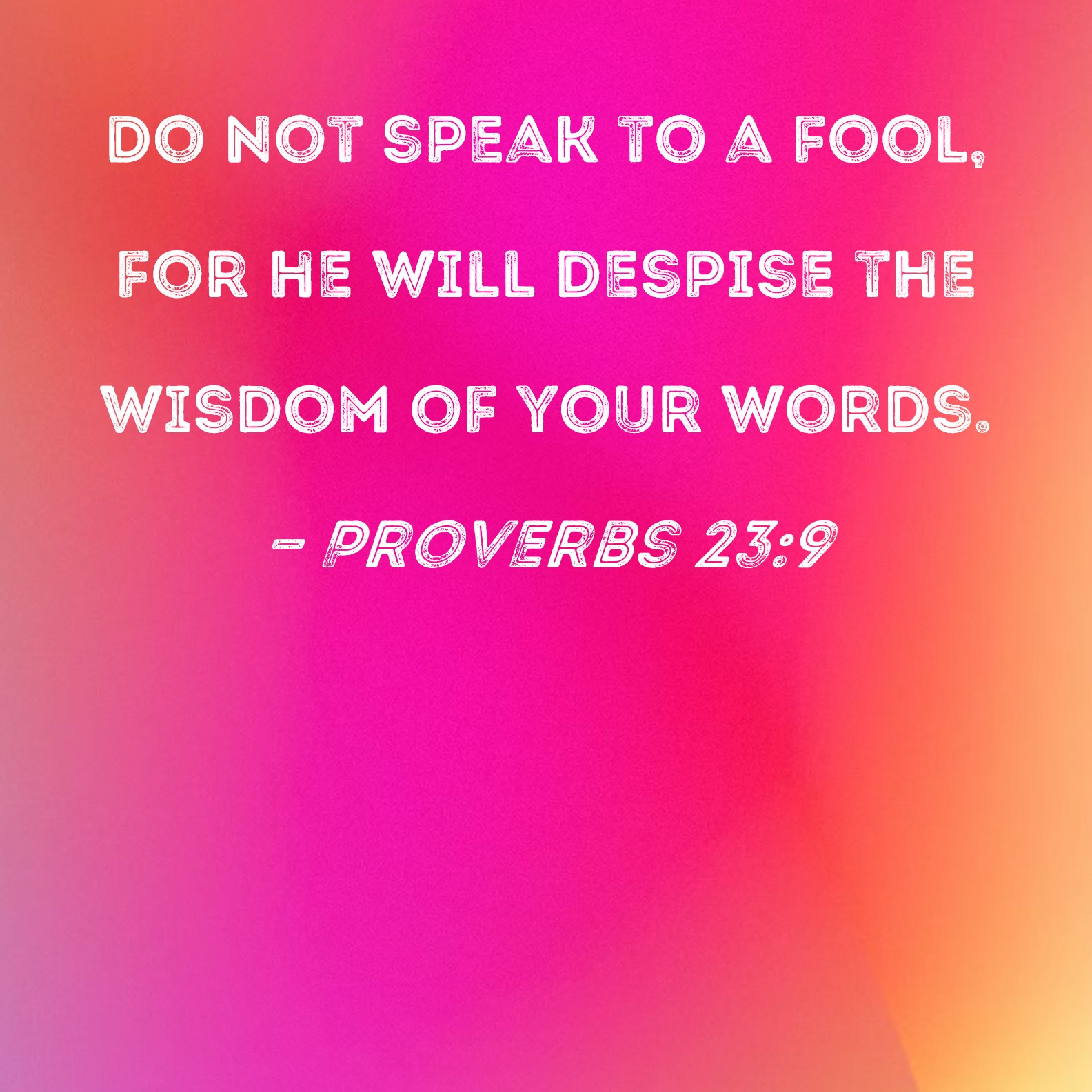 Proverbs 23:9 Do not speak to a fool, for he will despise the wisdom of your words.