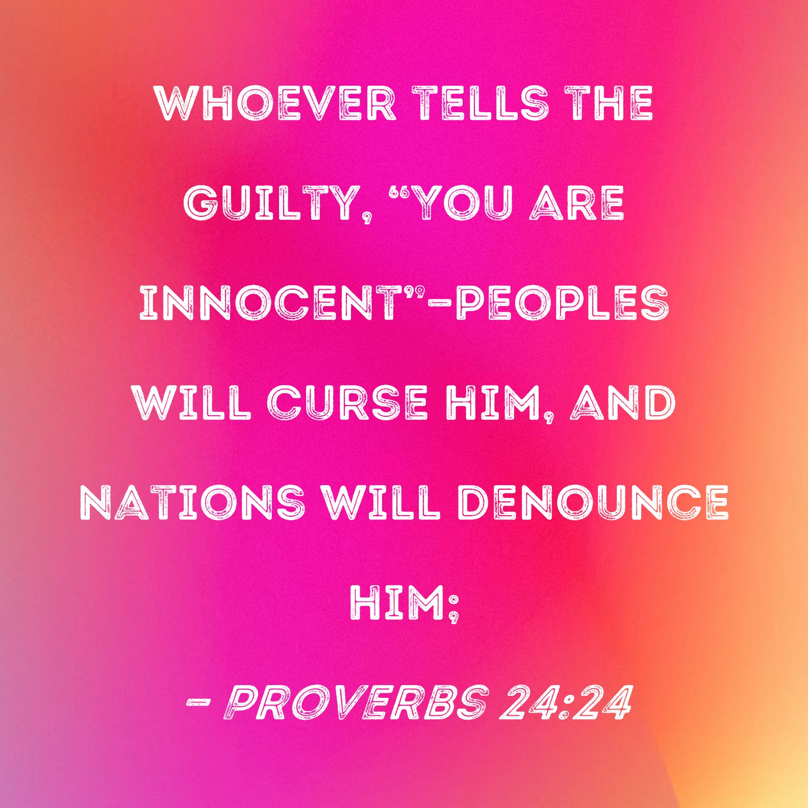 Proverbs 24:24 Whoever tells the guilty, "You are innocent"--peoples will curse him, and nations will denounce him;