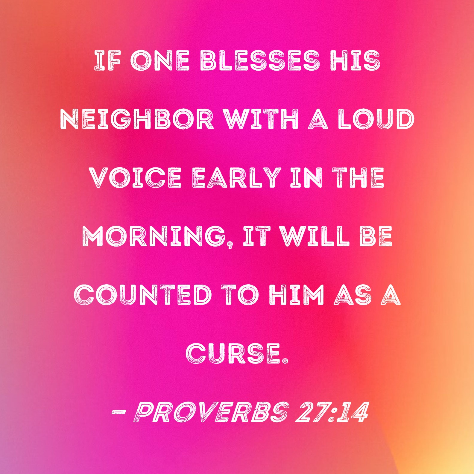 Proverbs 27:14 If one blesses his neighbor with a loud voice early in the morning, it will be counted to him as a curse.