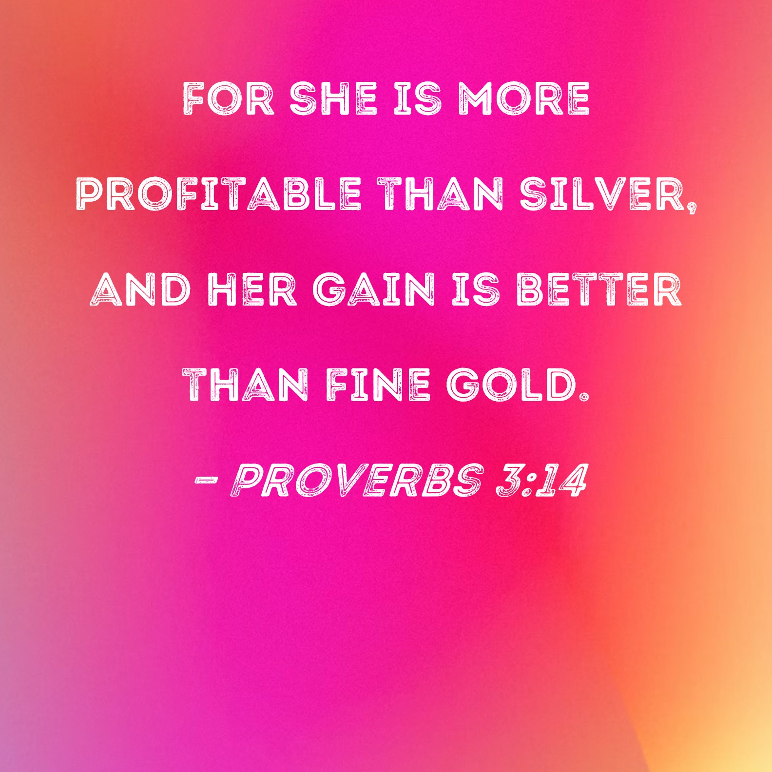 Proverbs 3:14 for she is more profitable than silver, and her gain is better than fine gold.
