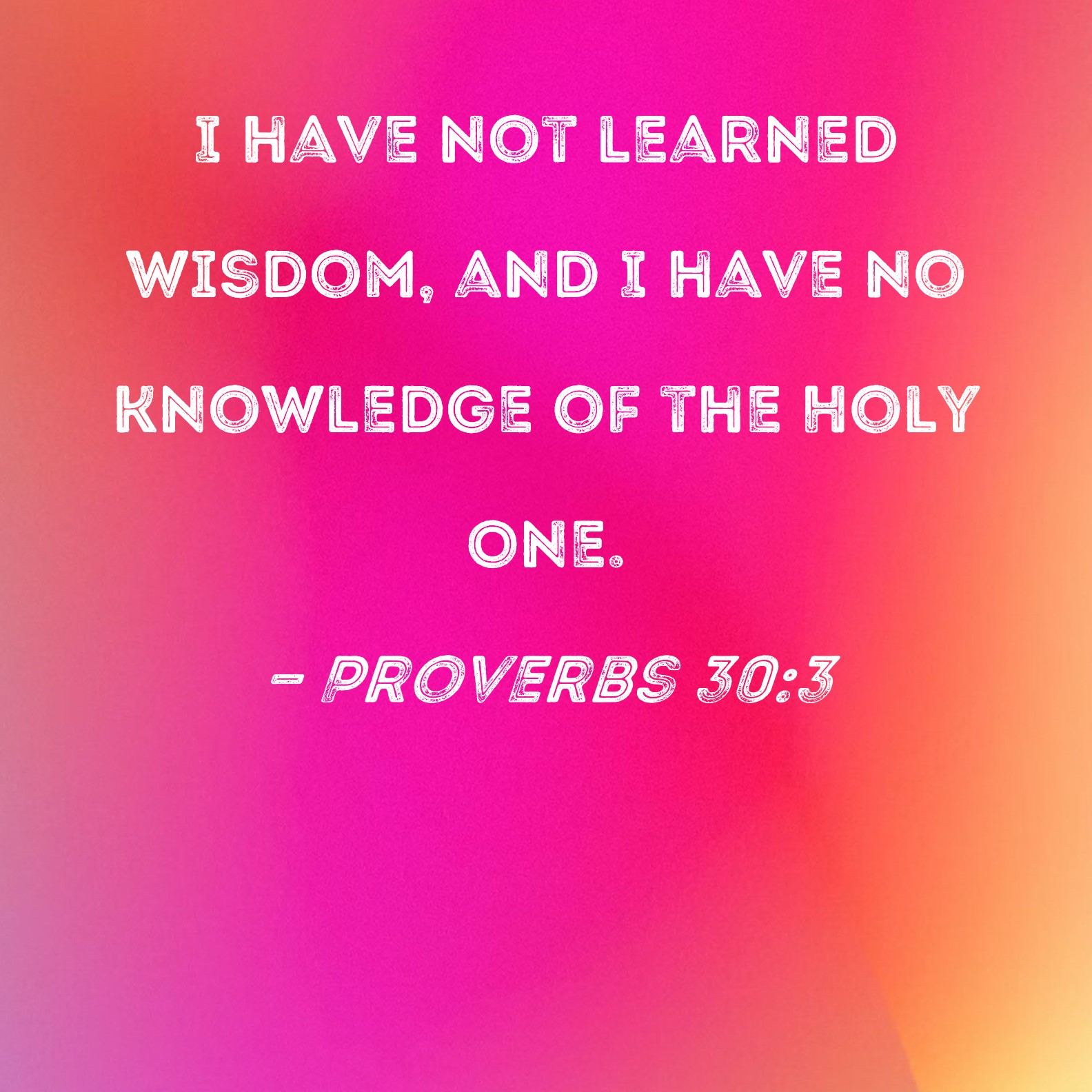 Proverbs 30:3 I have not learned wisdom, and I have no knowledge of the Holy One.