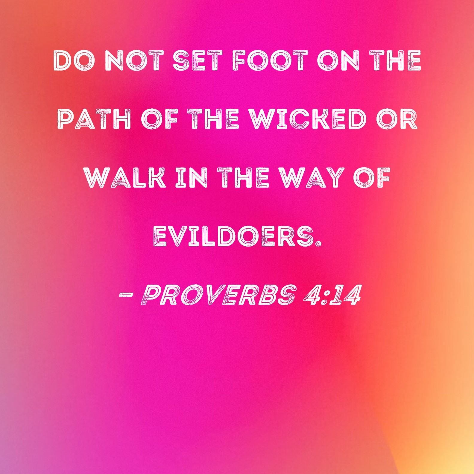 Proverbs 4:14 Do not set foot on the path of the wicked or walk in the way of evildoers.