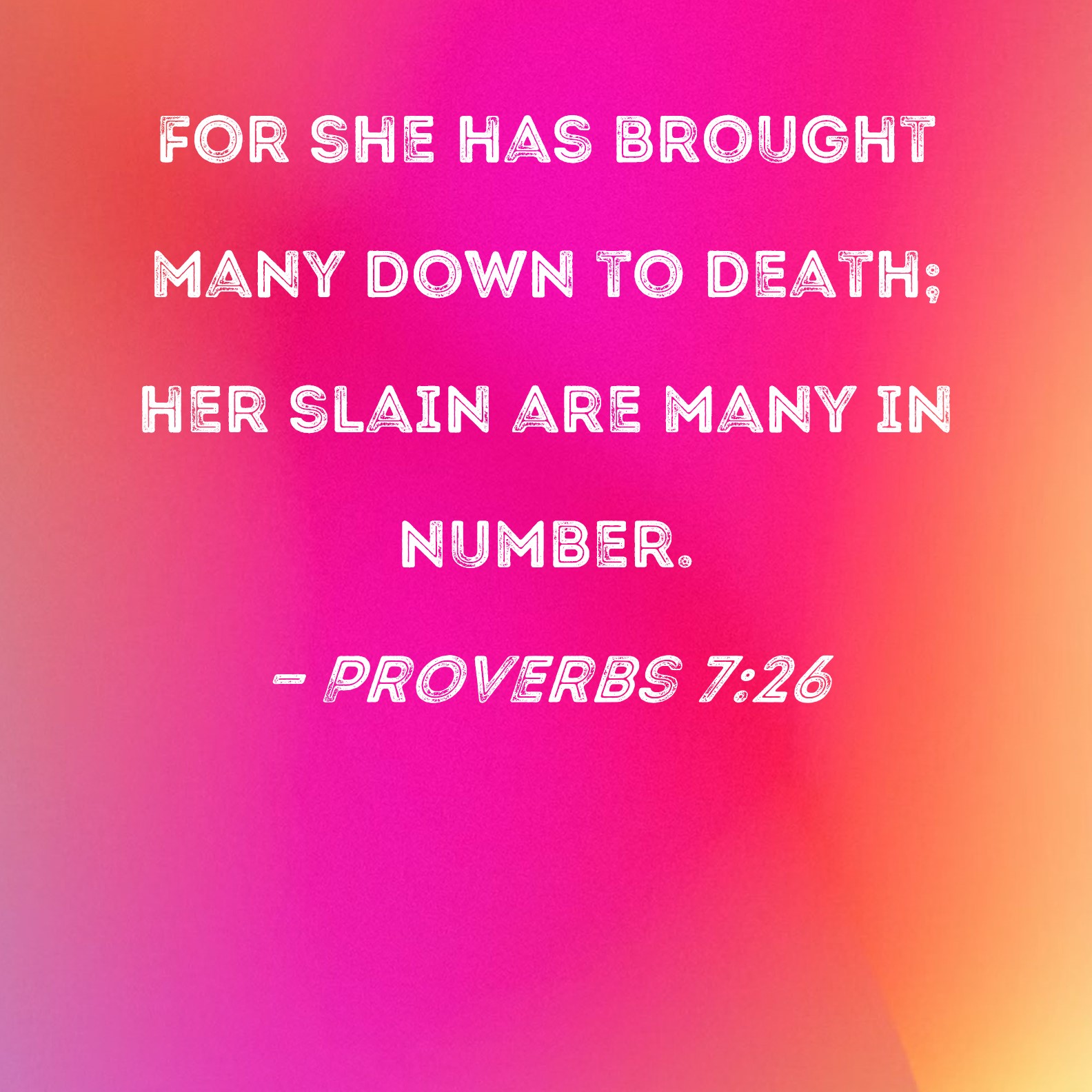 Proverbs 7:26 For she has brought many down to death; her slain are many in number.