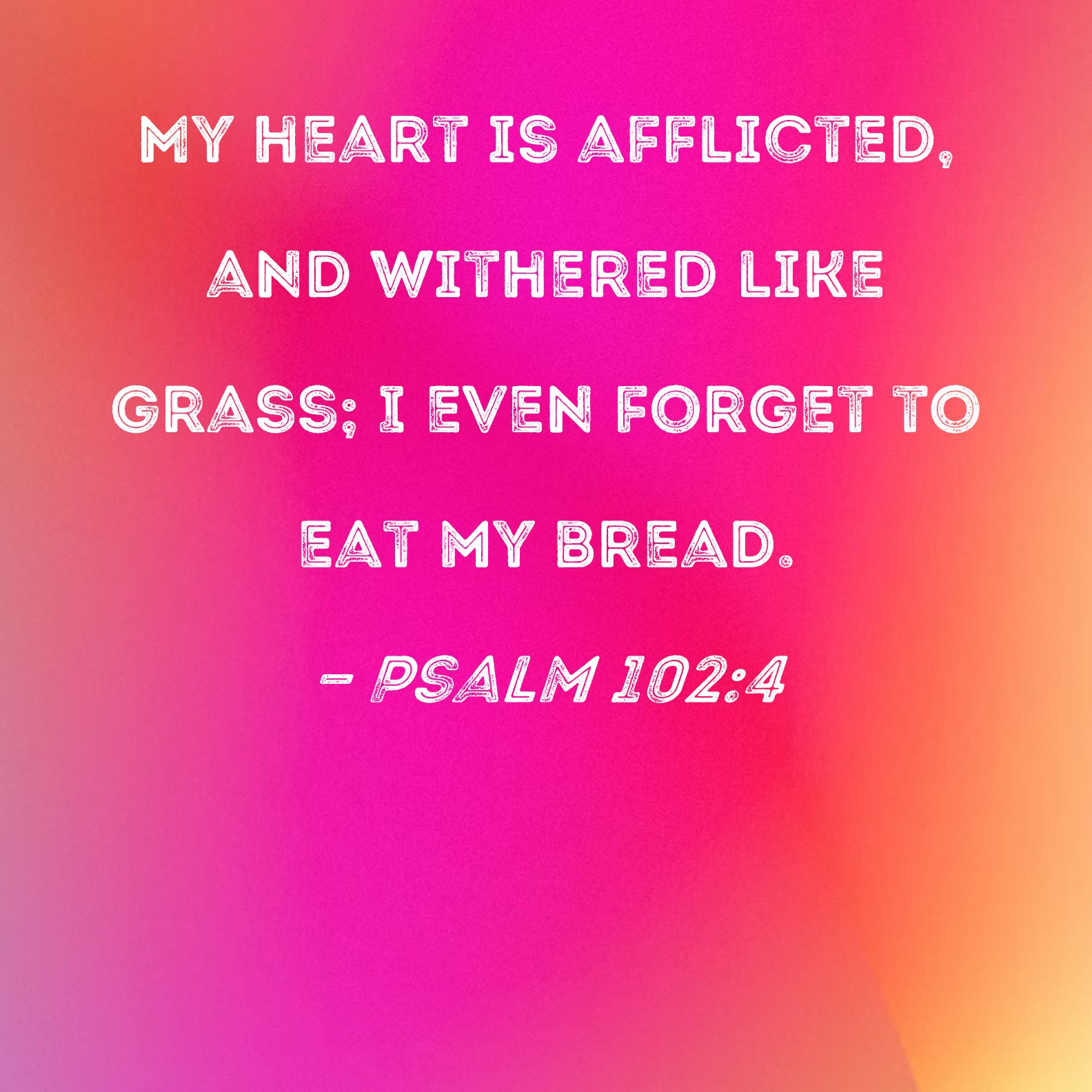 Psalm 102:4 My heart is afflicted, and withered like grass; I even forget to eat my bread.