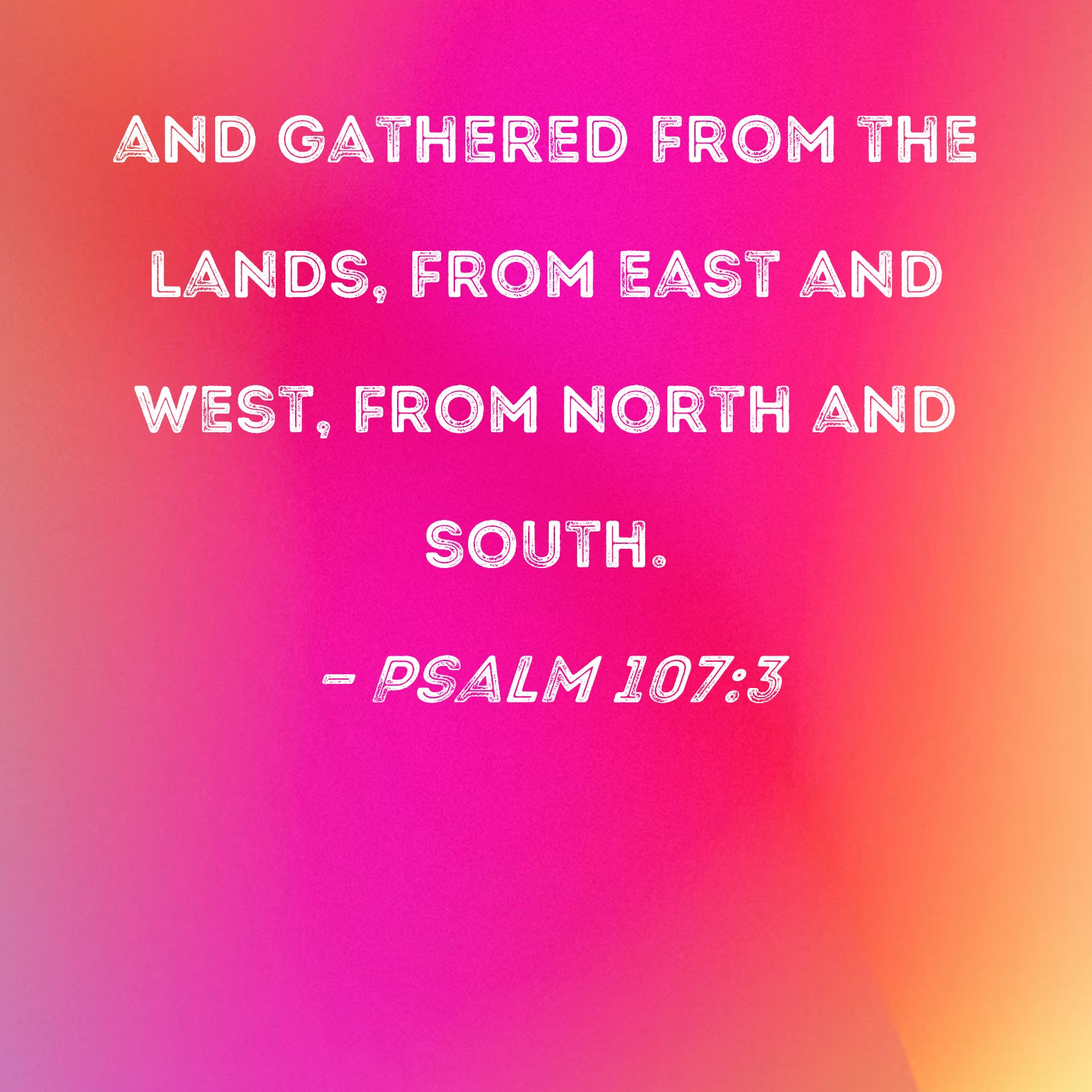 Psalm 107:3 and gathered from the lands, from east and west, from north and south.