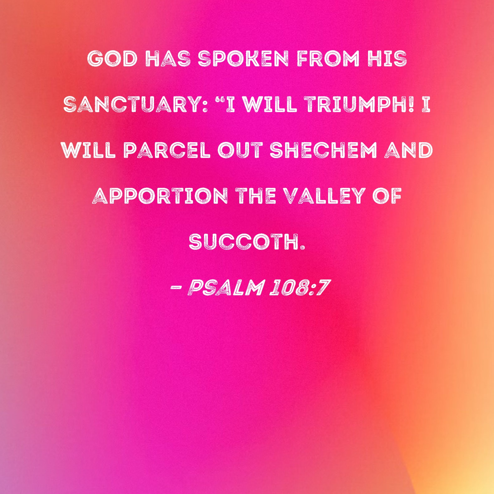 Psalm 108:7 God has spoken from His sanctuary: "I will triumph! I will parcel out Shechem and apportion the Valley of Succoth.
