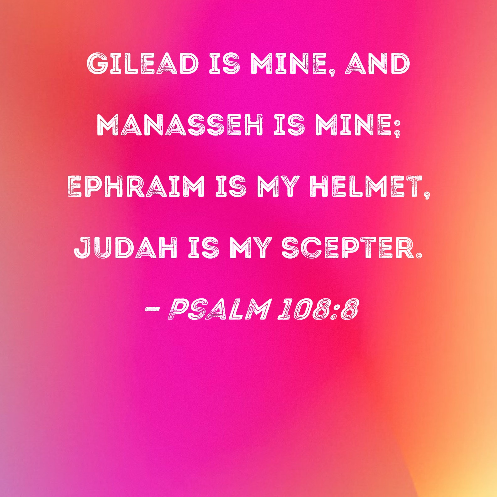 Psalm 108:8 Gilead is Mine, and Manasseh is Mine; Ephraim is My helmet, Judah is My scepter.