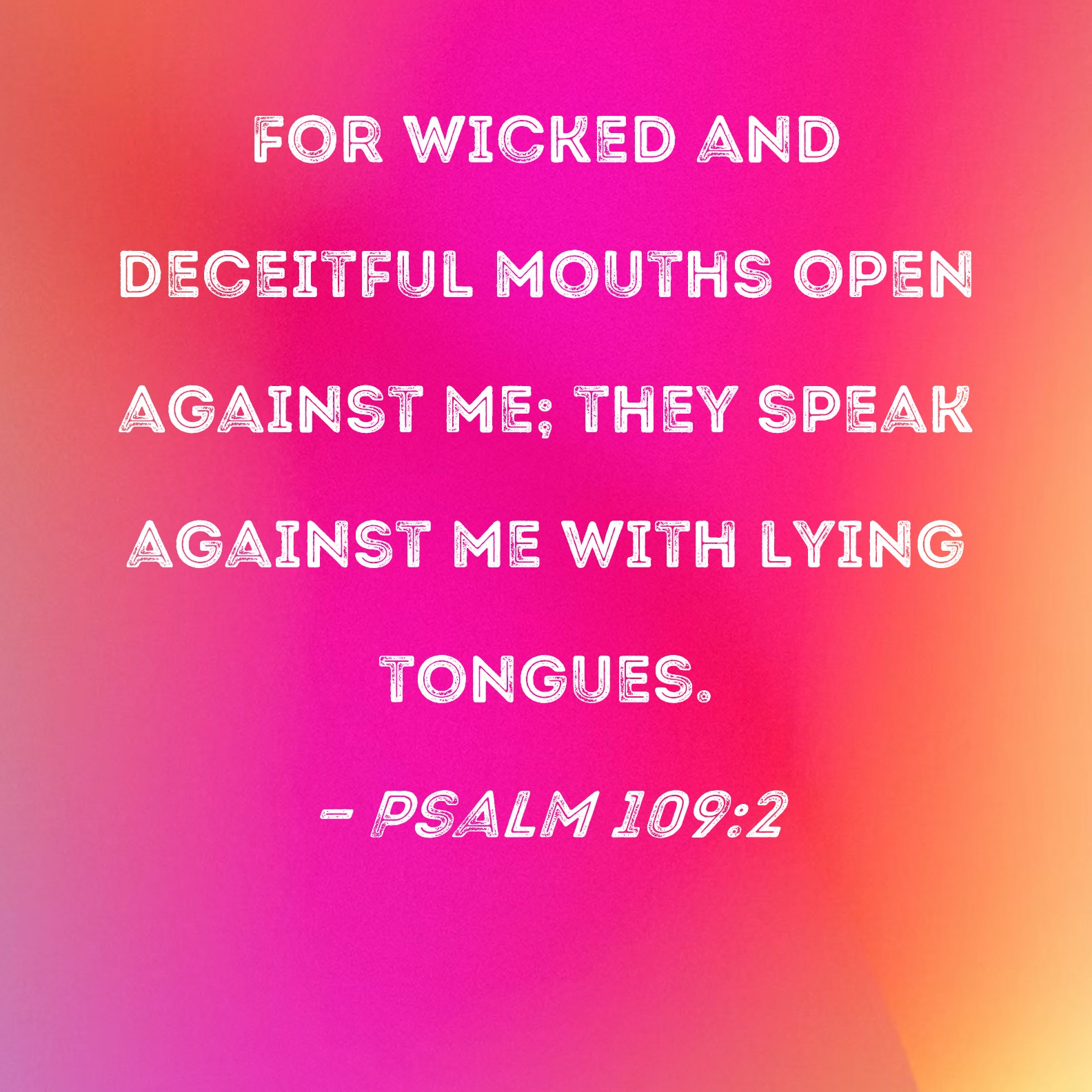 Psalm 109:2 For wicked and deceitful mouths open against me; they speak against me with lying tongues.