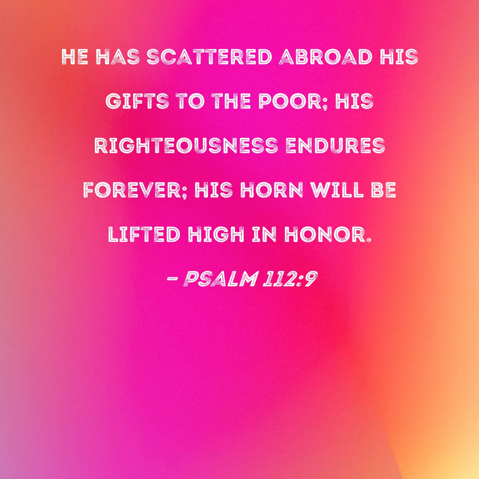 Psalm 112:9 He has scattered abroad his gifts to the poor; his righteousness endures forever; his horn will be lifted high in honor.