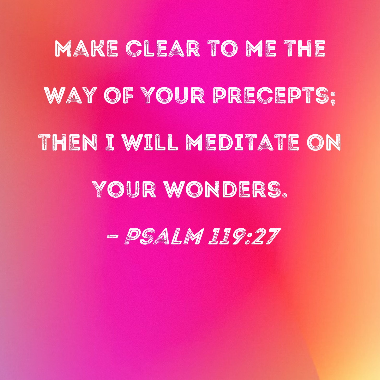Psalm 119:27 Make clear to me the way of Your precepts; then I will meditate on Your wonders.