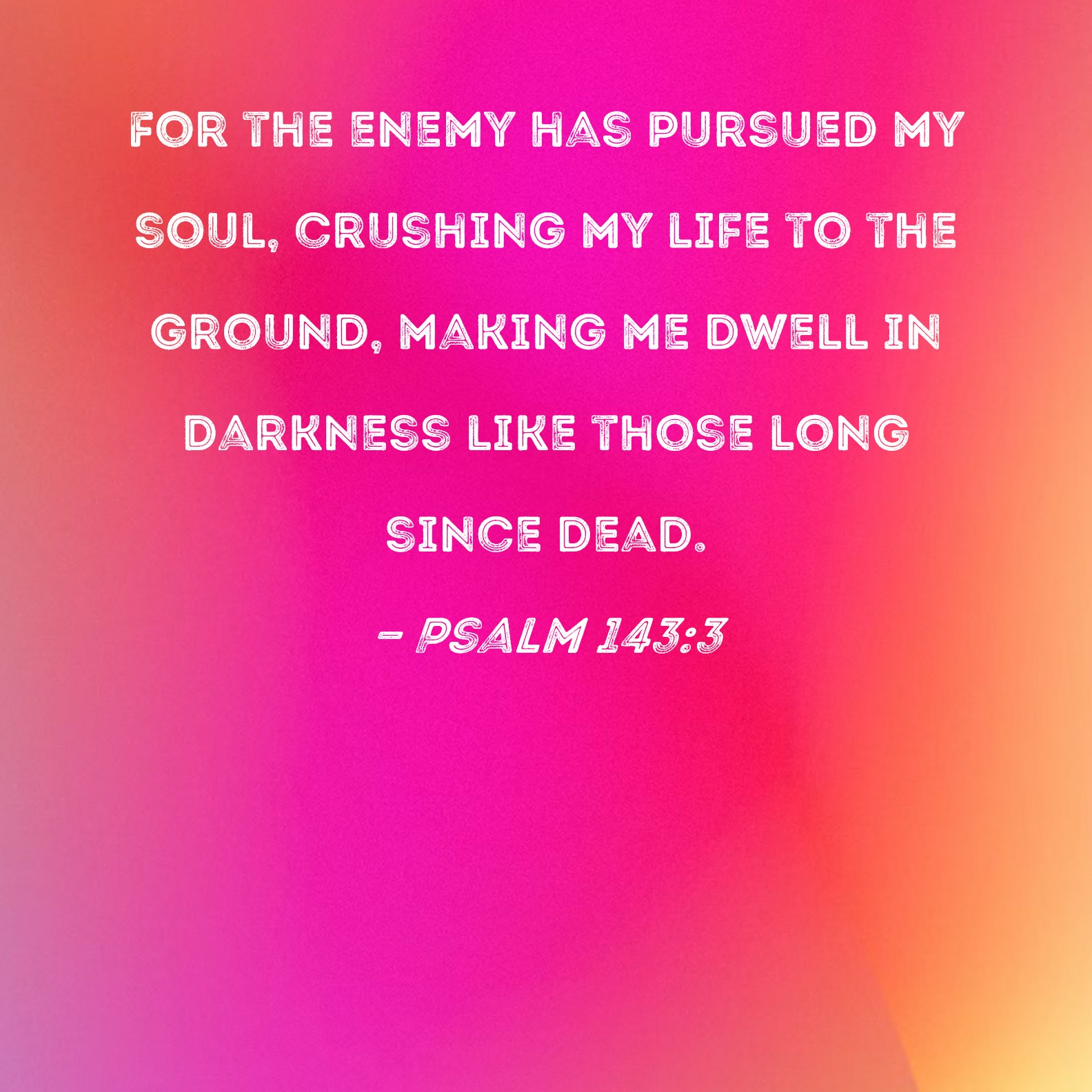Psalm 143:3 For the enemy has pursued my soul, crushing my life to the ground, making me dwell in darkness like those long since dead.