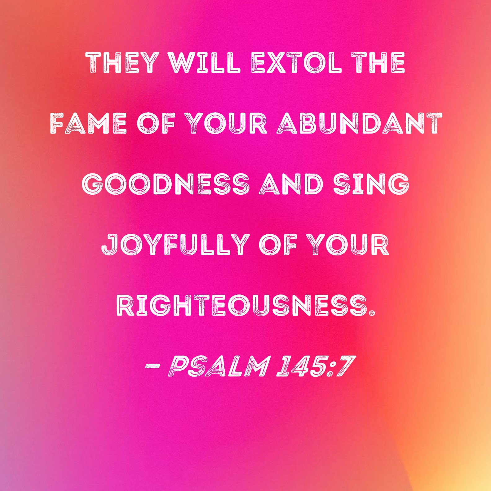 Psalm 145:7 They will extol the fame of Your abundant goodness and sing joyfully of Your righteousness.