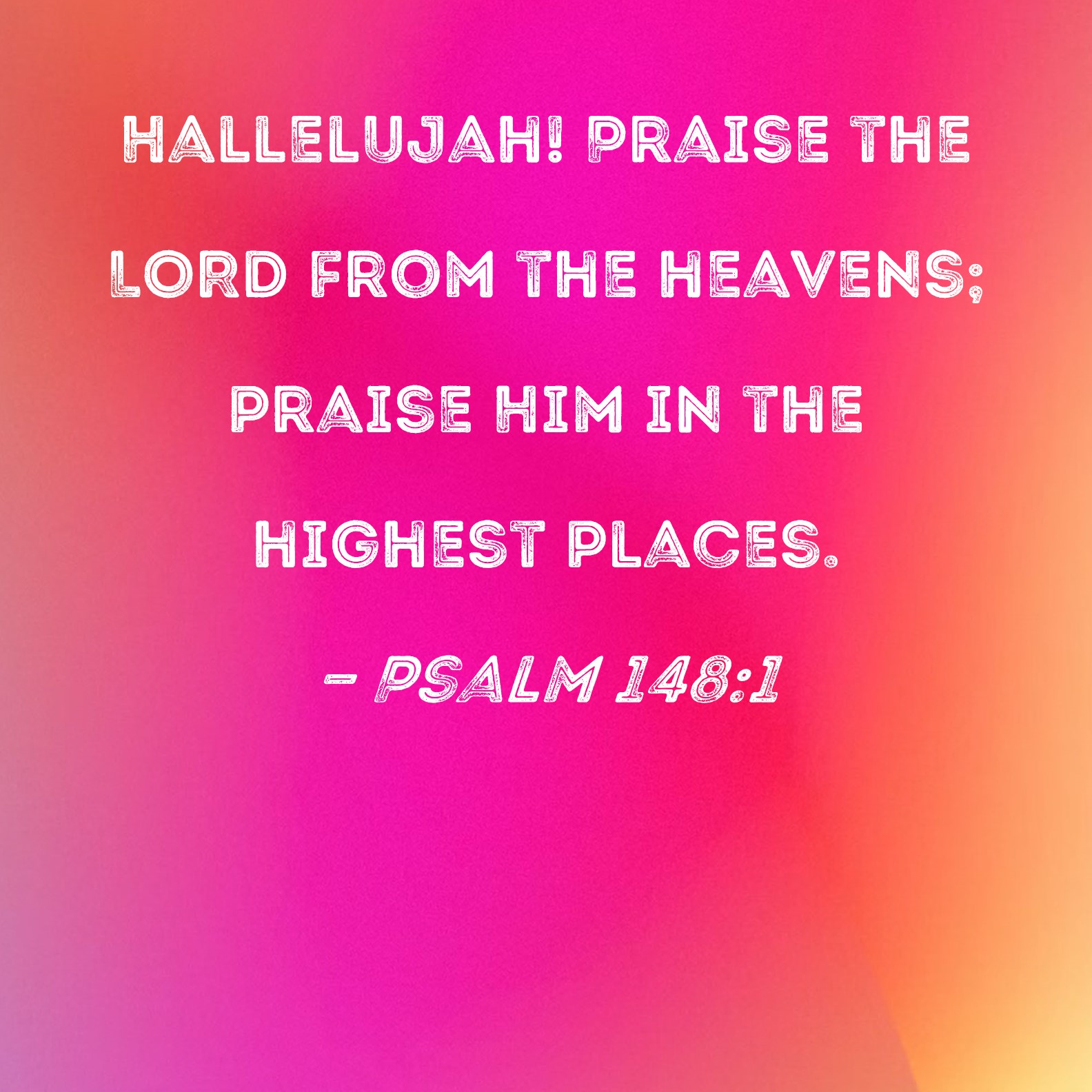Psalm 148:1 Hallelujah! Praise the LORD from the heavens; praise Him in the highest places.