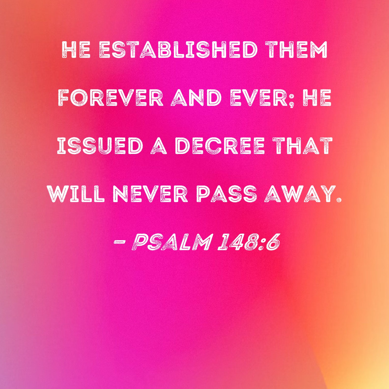Psalm 148:6 He established them forever and ever; He issued a decree that will never pass away.