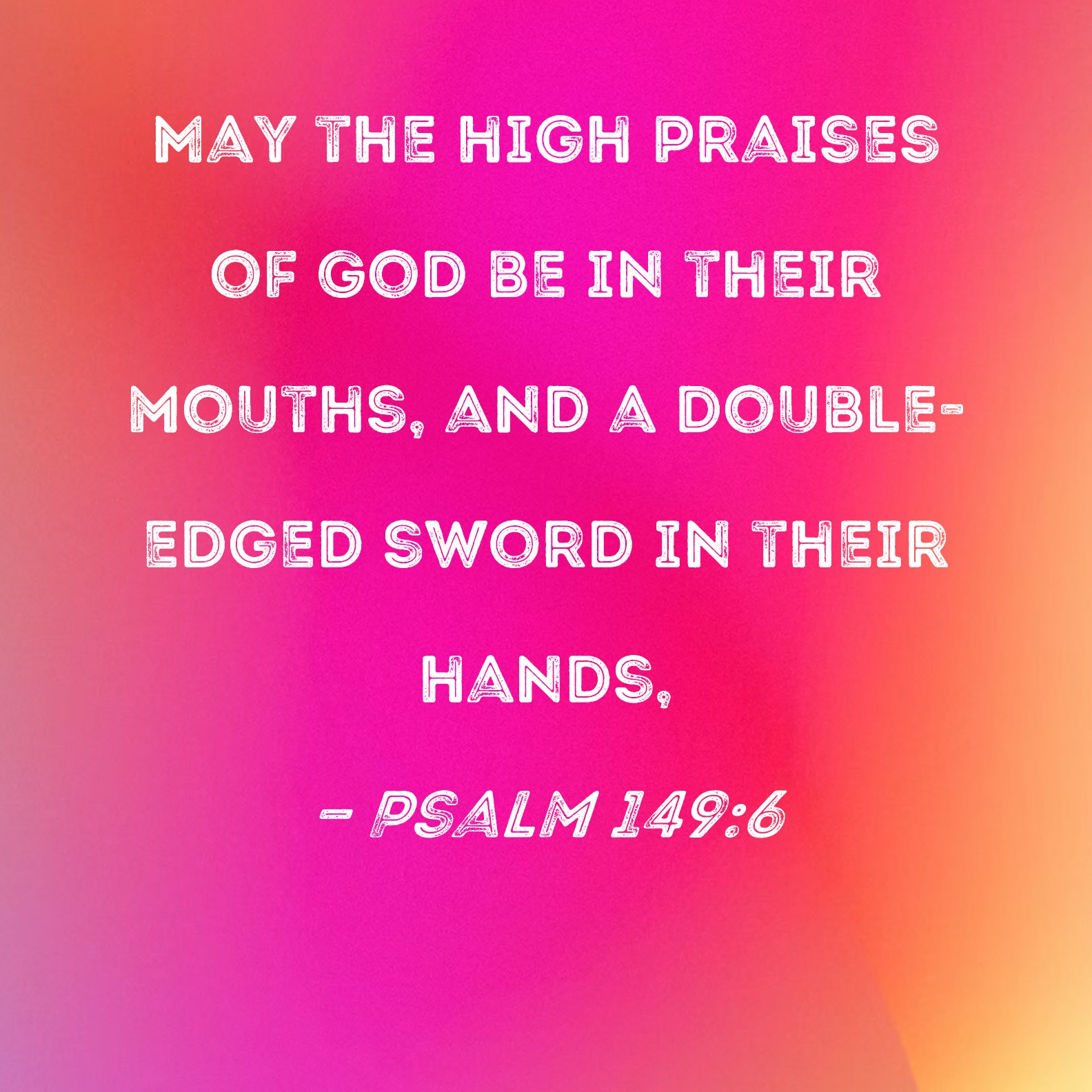 Psalm 149:6 May the high praises of God be in their mouths, and a double-edged sword in their hands,