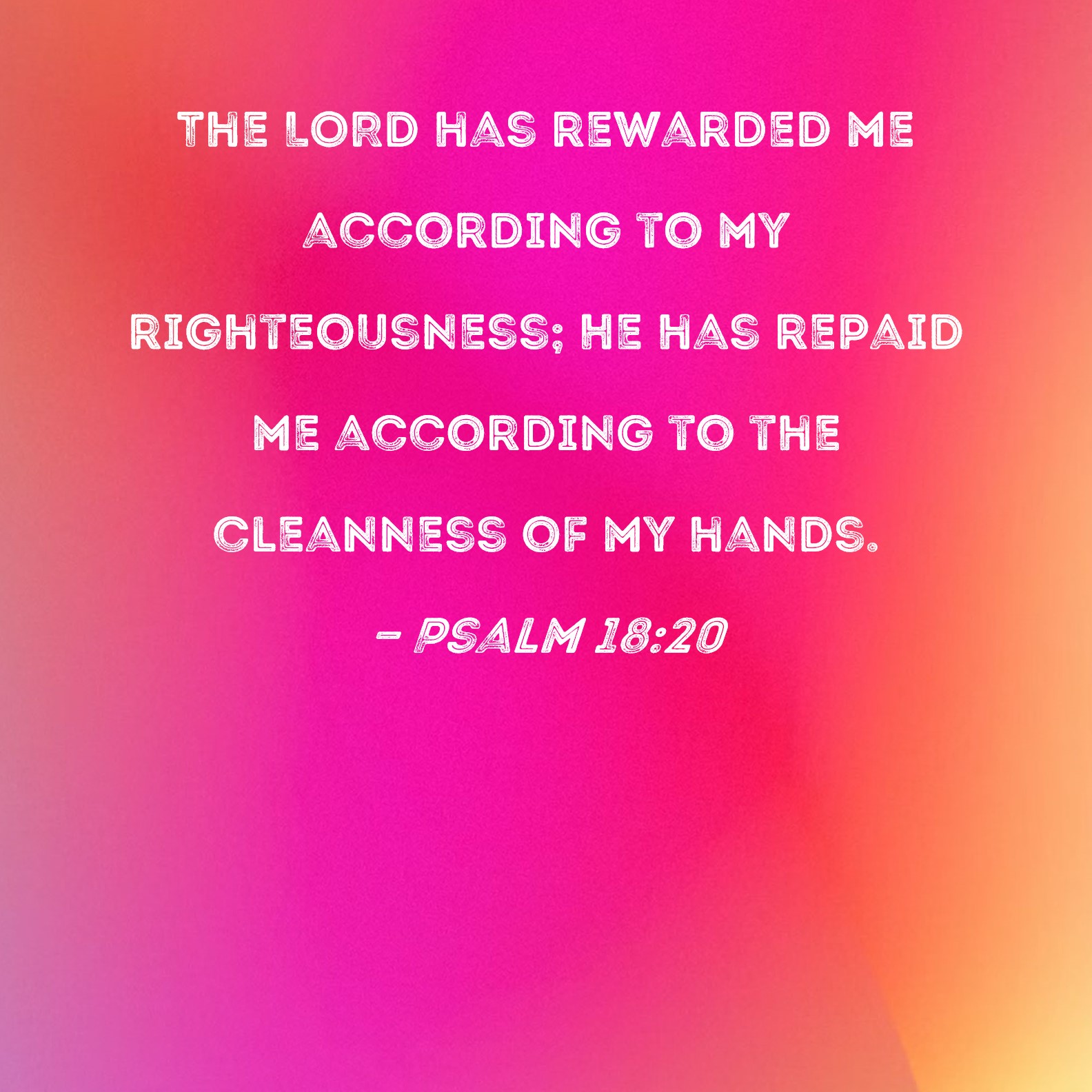 Psalm 18:20 The LORD has rewarded me according to my righteousness; He has repaid me according to the cleanness of my hands.